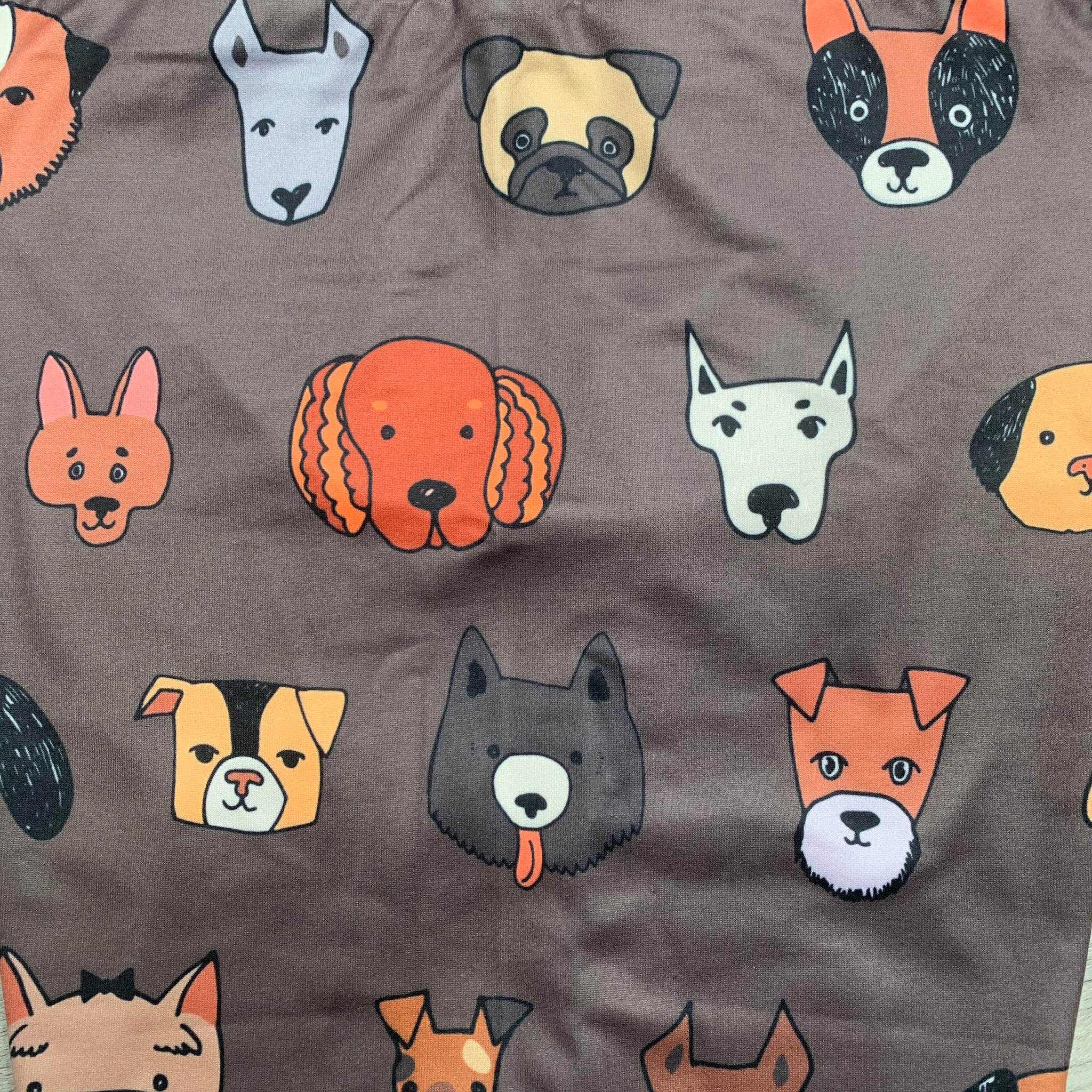 Puppy Dog Faces Print Soft Leggings w/ Yoga Band Pocket