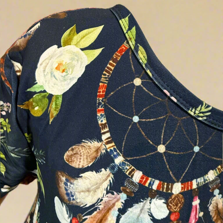 A-line Soft Stretchy Dress w/ Pockets - Mermaid, Rainbow Roses, Dream Catchers