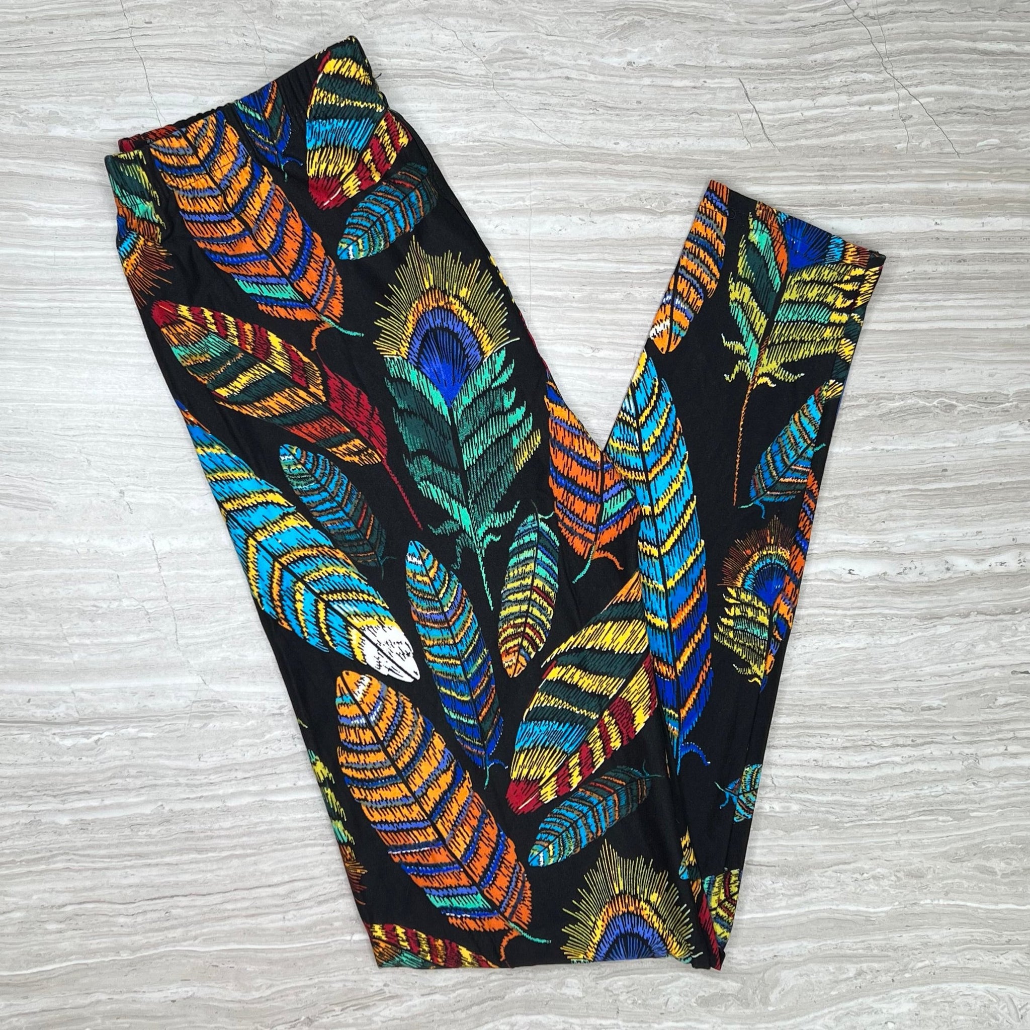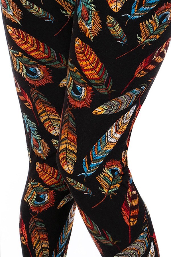 Embroidered Feather Soft Leggings