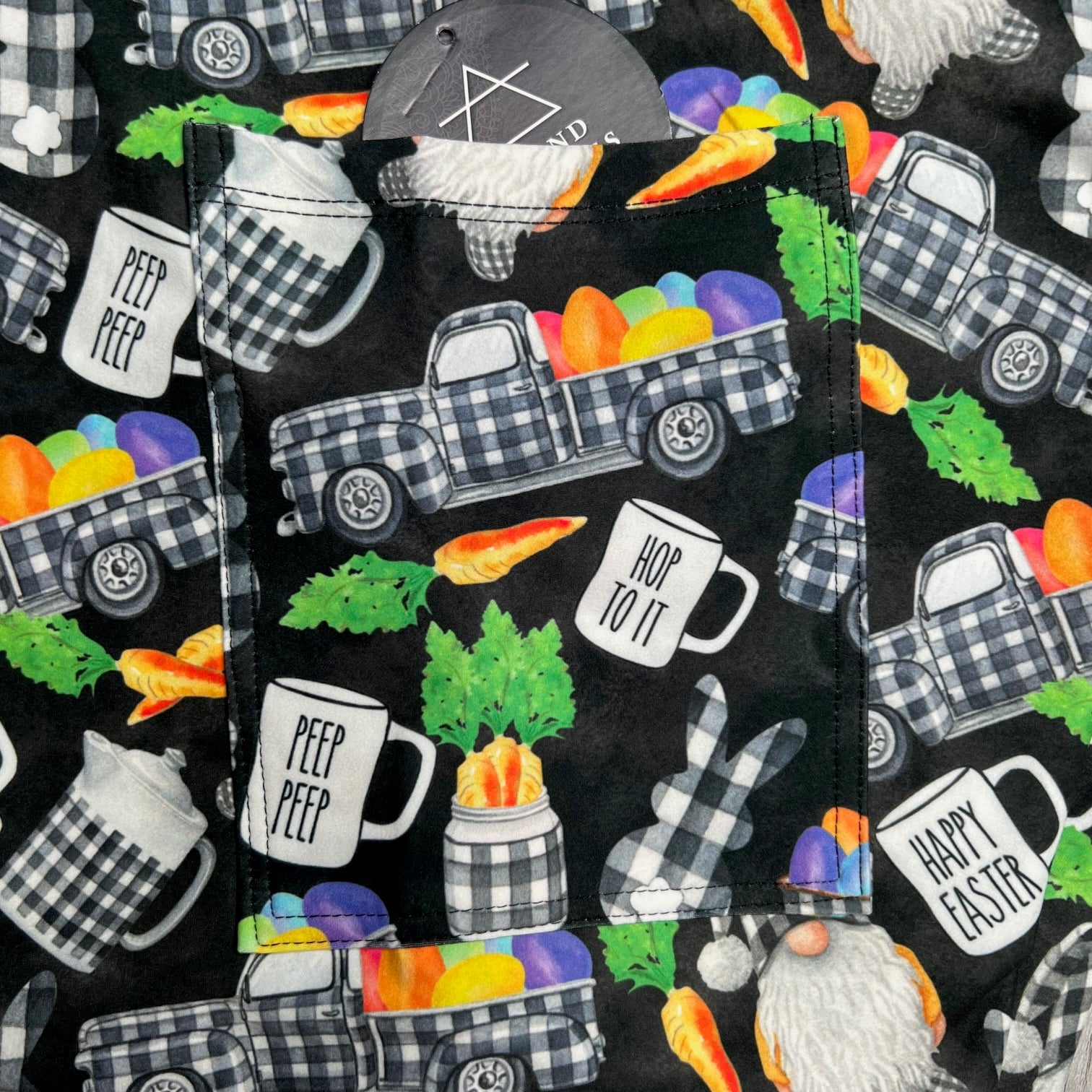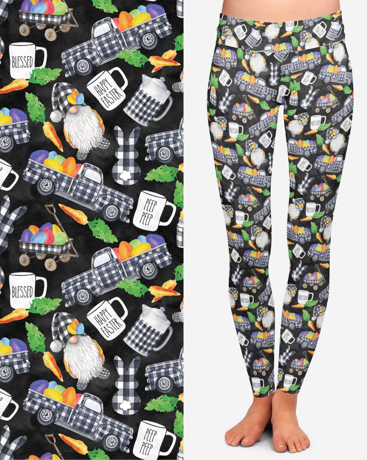 Happy Easter B&W Checker Plaid Patterned Gnomes Print Leggings - Peep Peep
