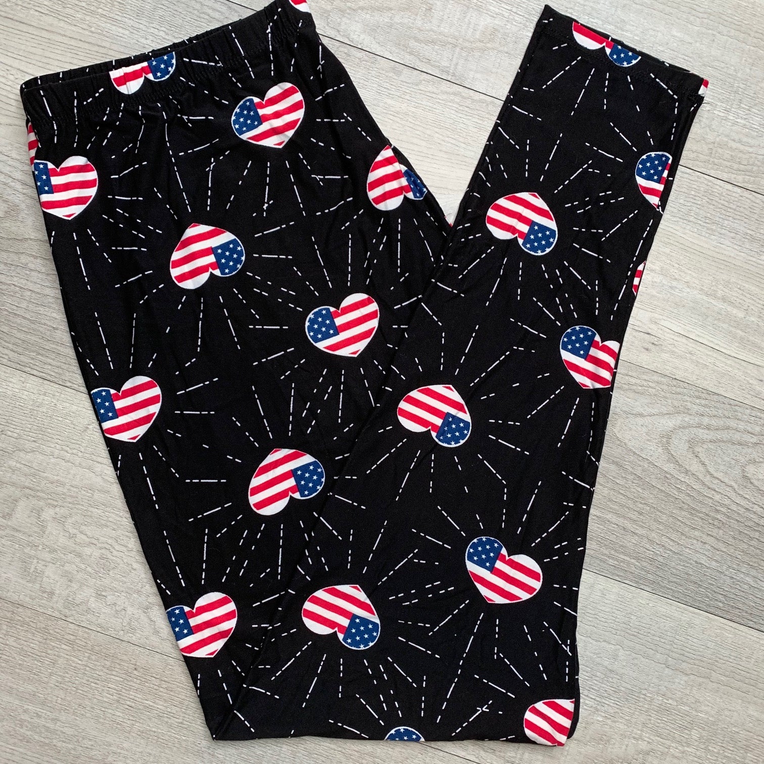 Flag Heart Print Soft Leggings