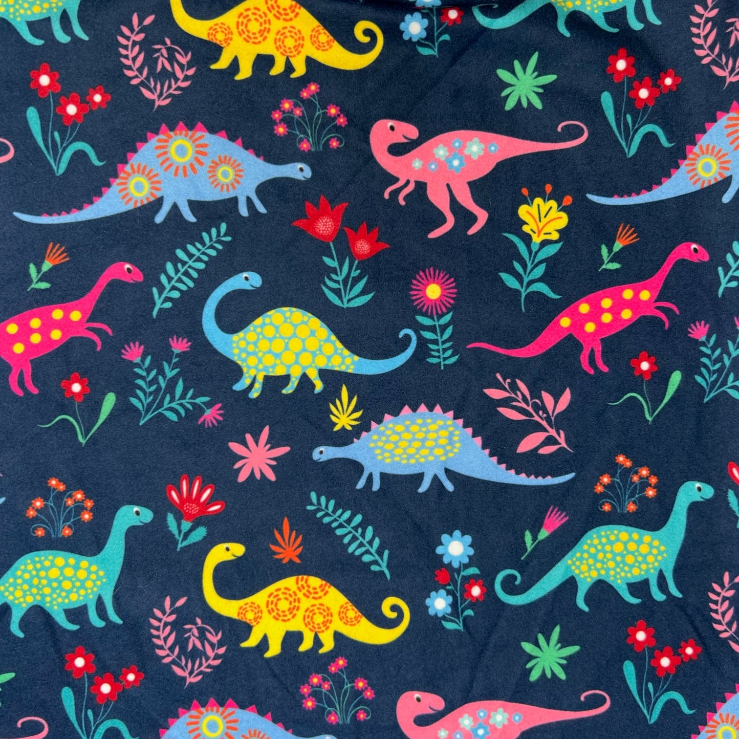 Colorful Floral Dinosaur Print Soft Navy Blue Kids Leggings