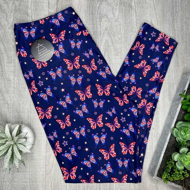4th of July Red White & Blue Butterfly Star Print Soft Leggings