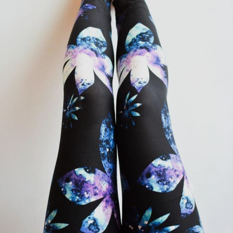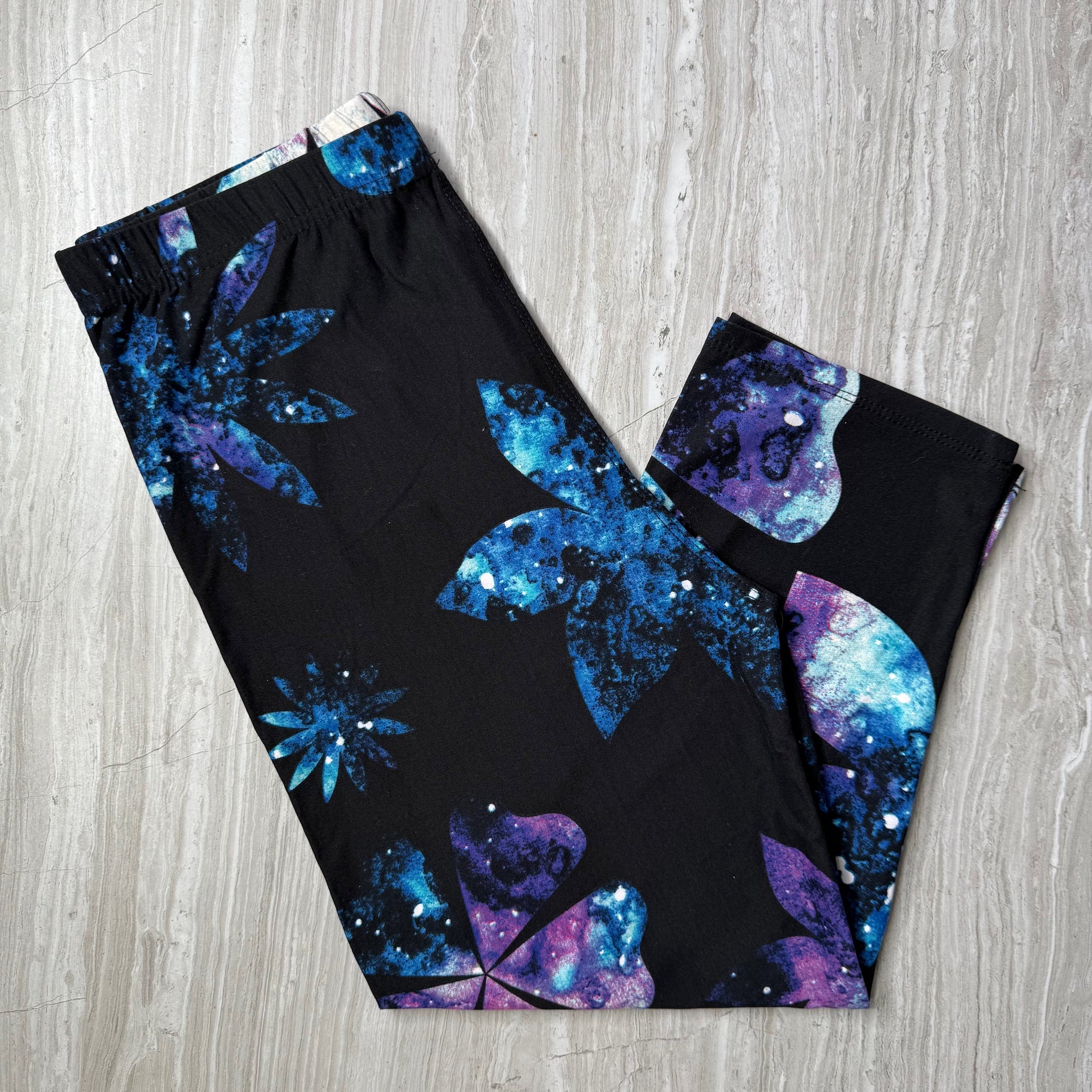Galaxy Flower Print Capri & Full Length Soft Black Leggings