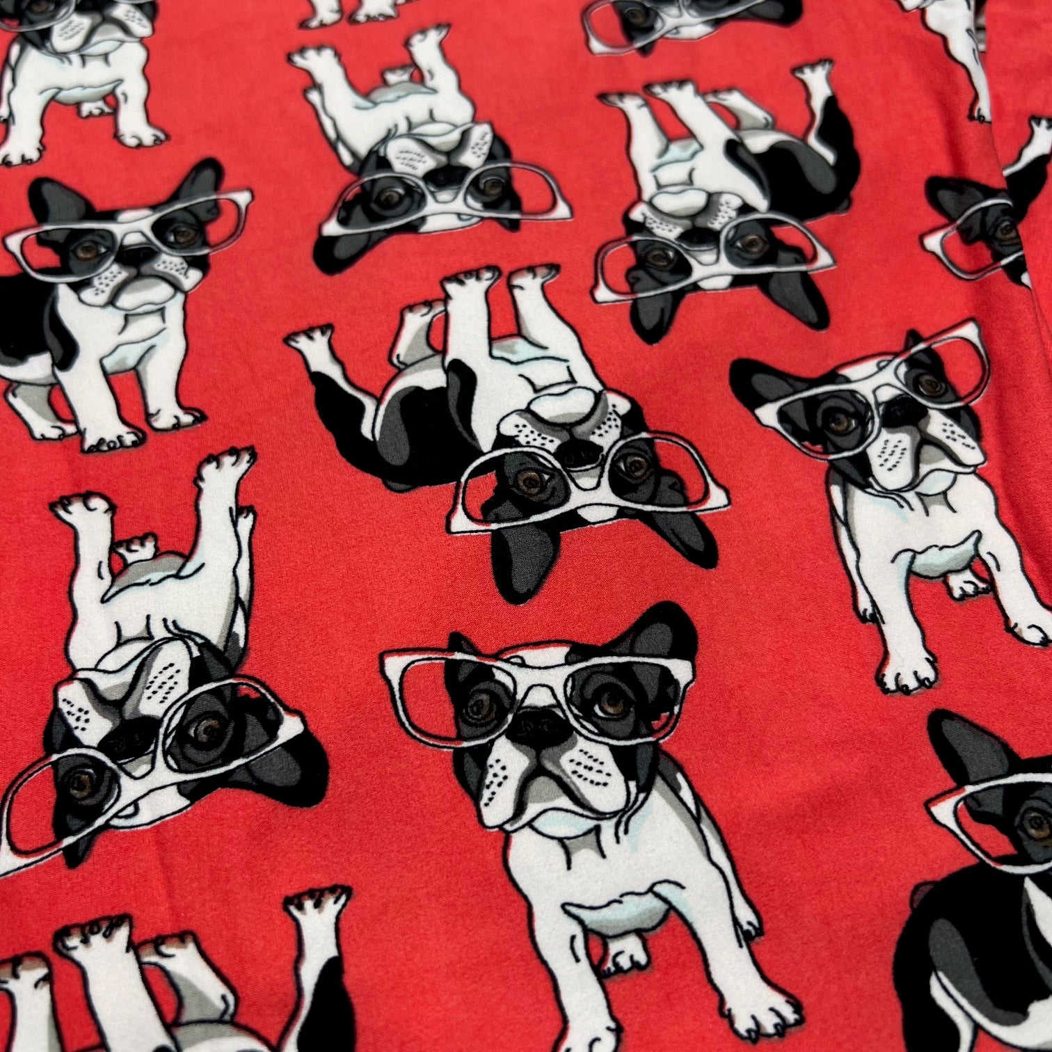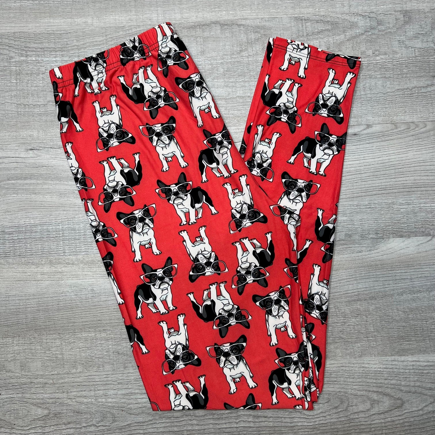 Dogs In Glasses Print Soft Stretchy Red Leggings
