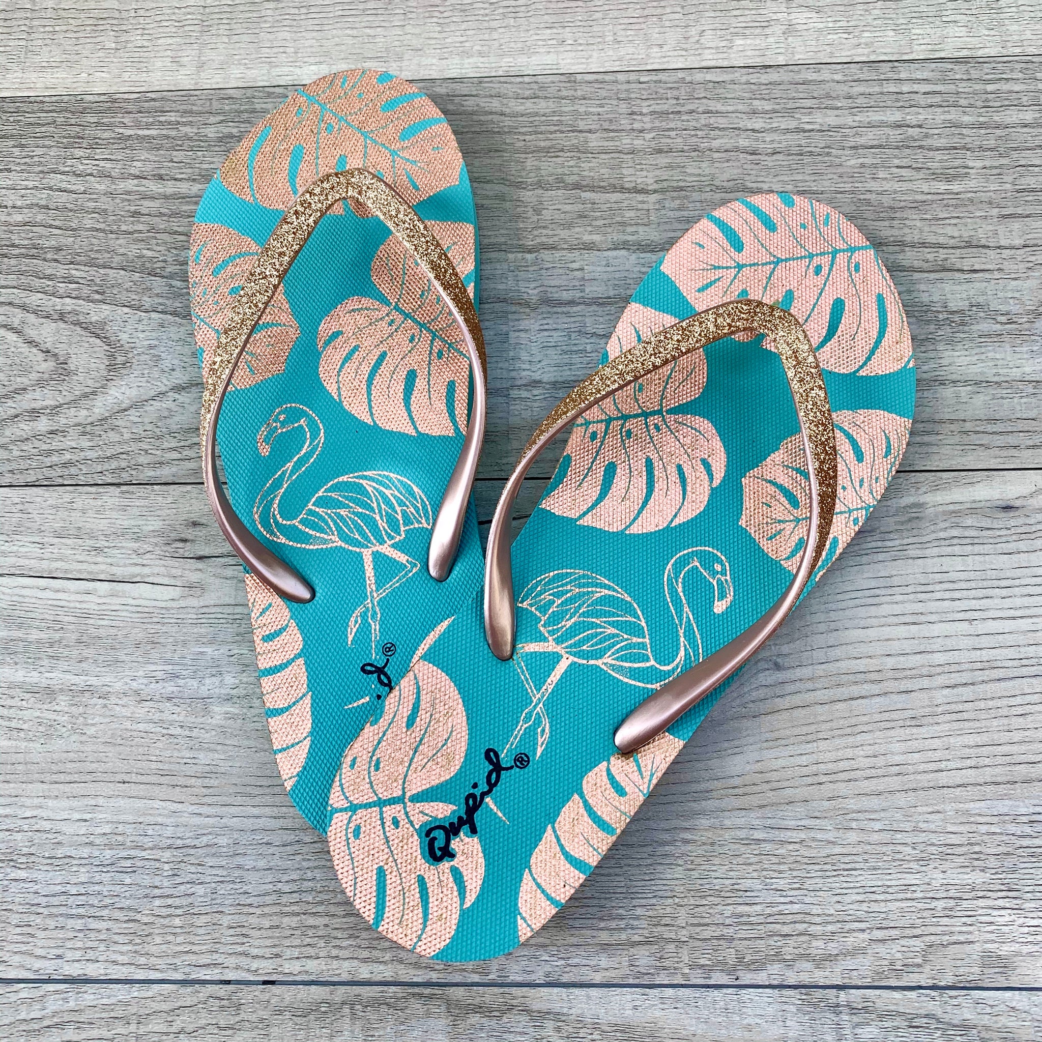 Glitter Gold Tropical Flamingo Thong Flip Flop Sandal