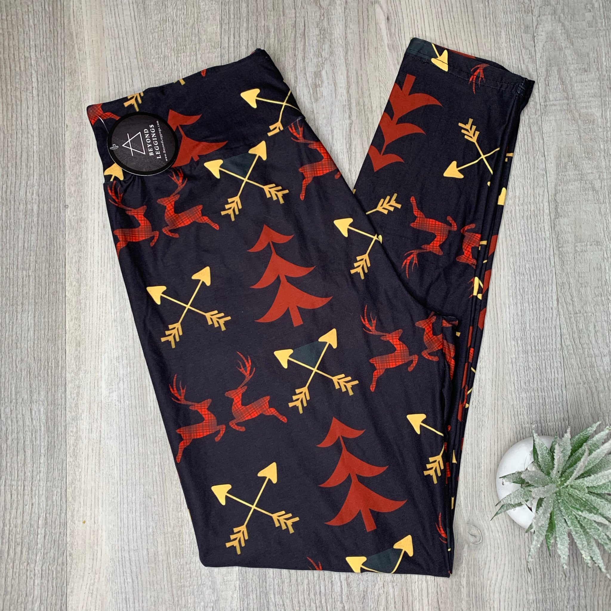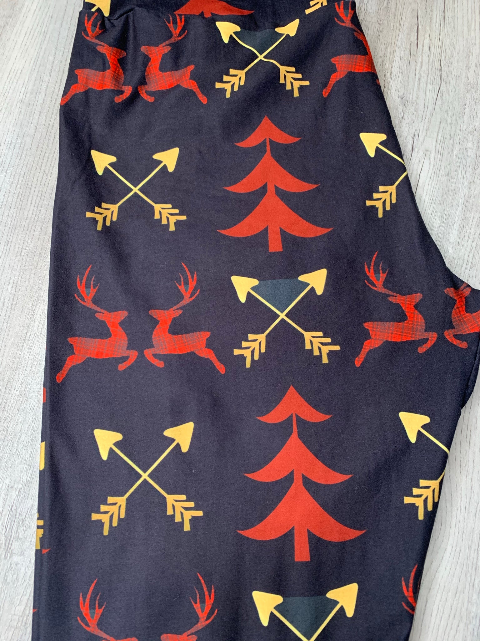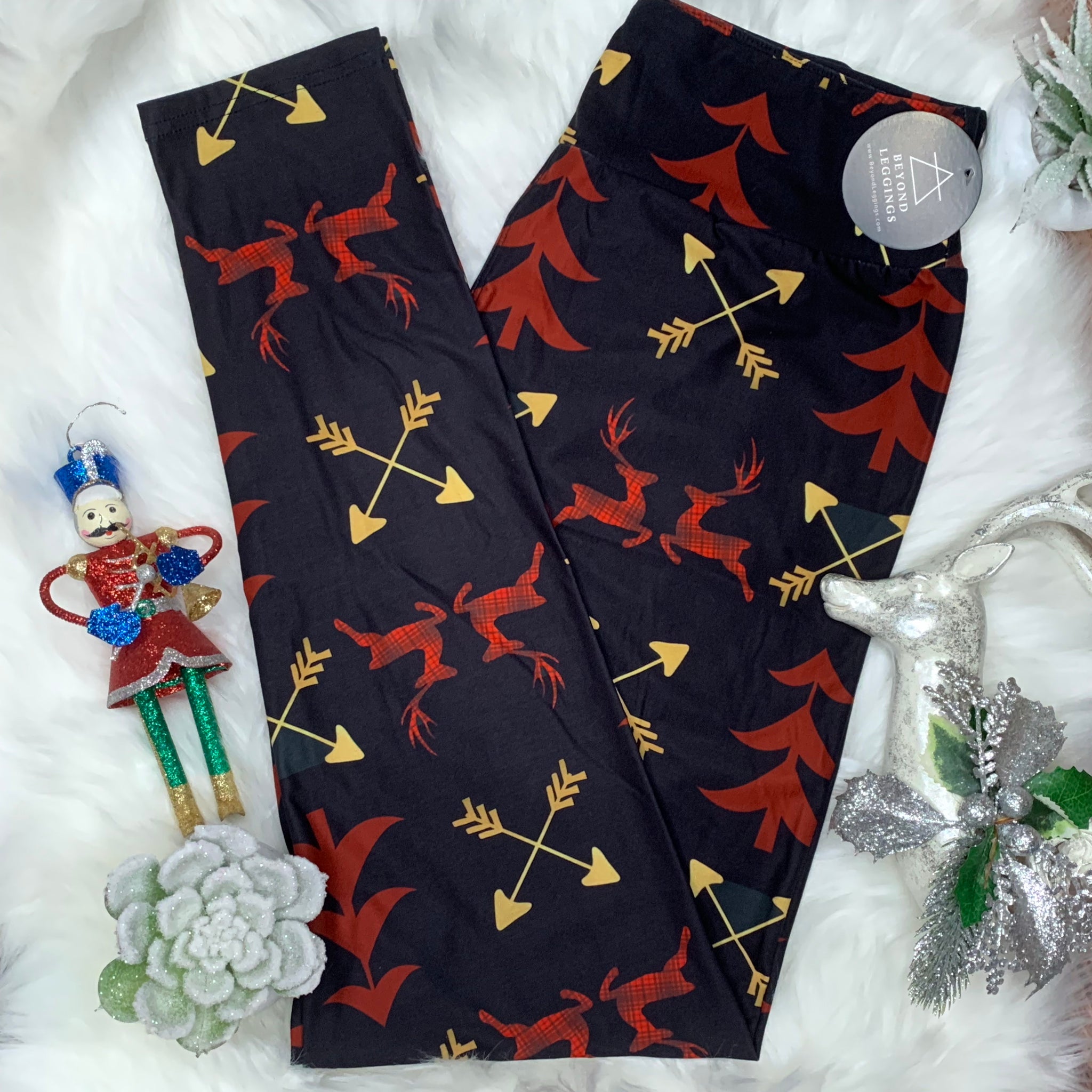 Christmas Red Plaid Reindeer Soft Leggings w/ Secret Pocket