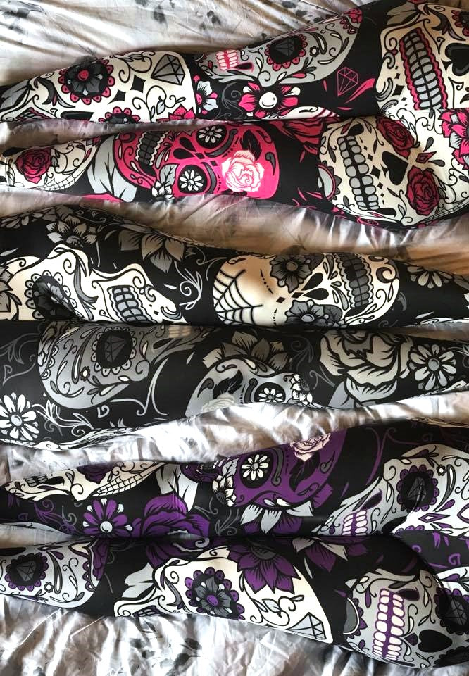 • Full-length leggings with sustainable fabric and sugar skull print.
