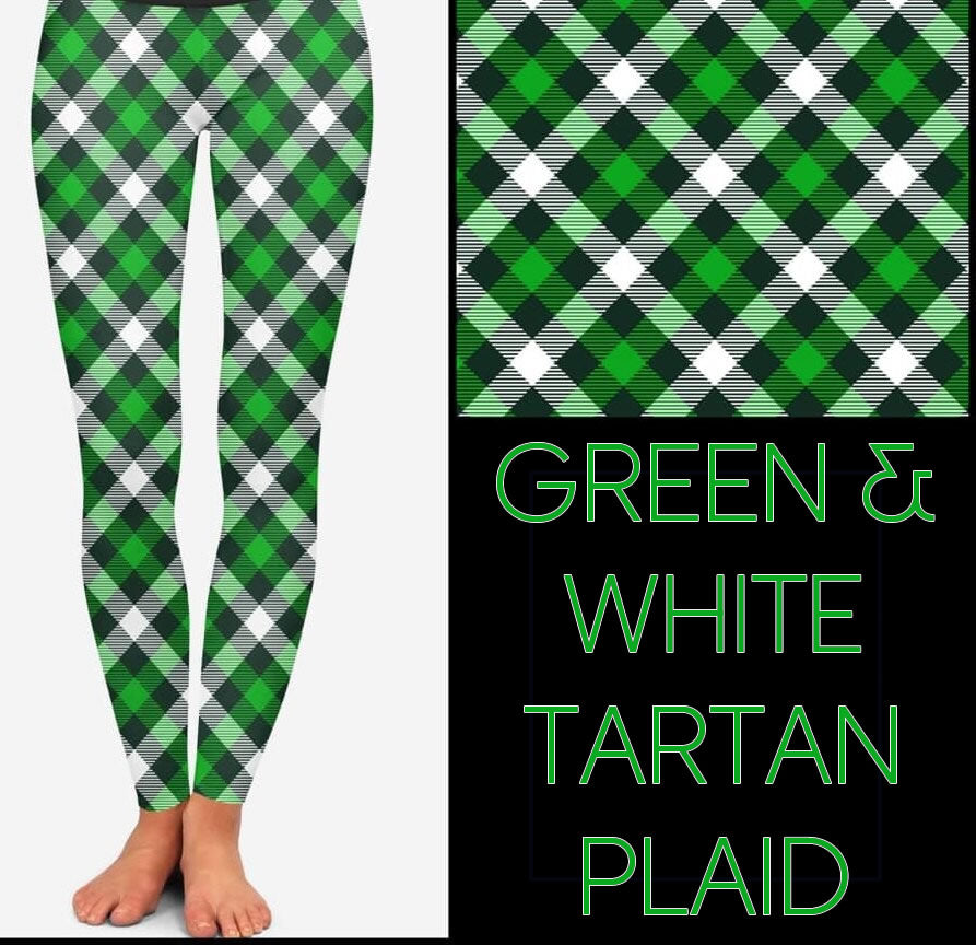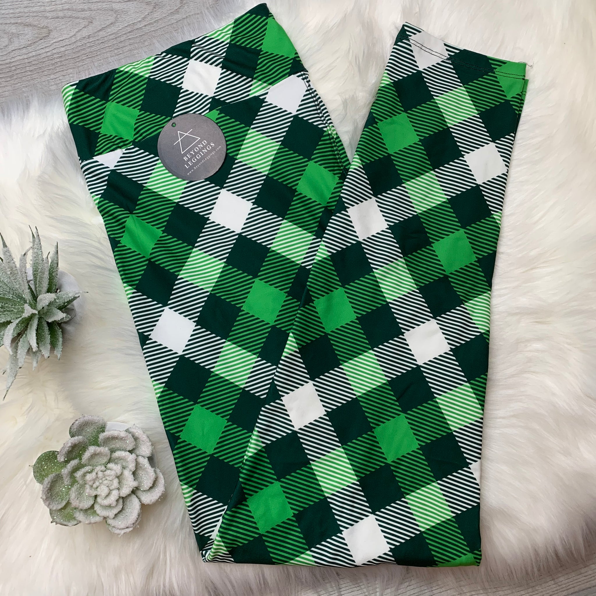 Green & White Checkered Tartan Plaid Print Soft Leggings - St. Patricks Day