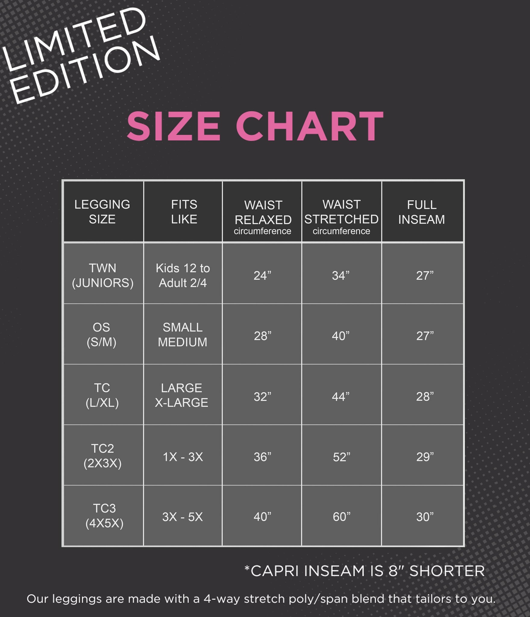 - Wide stretch 3" yoga waistband
