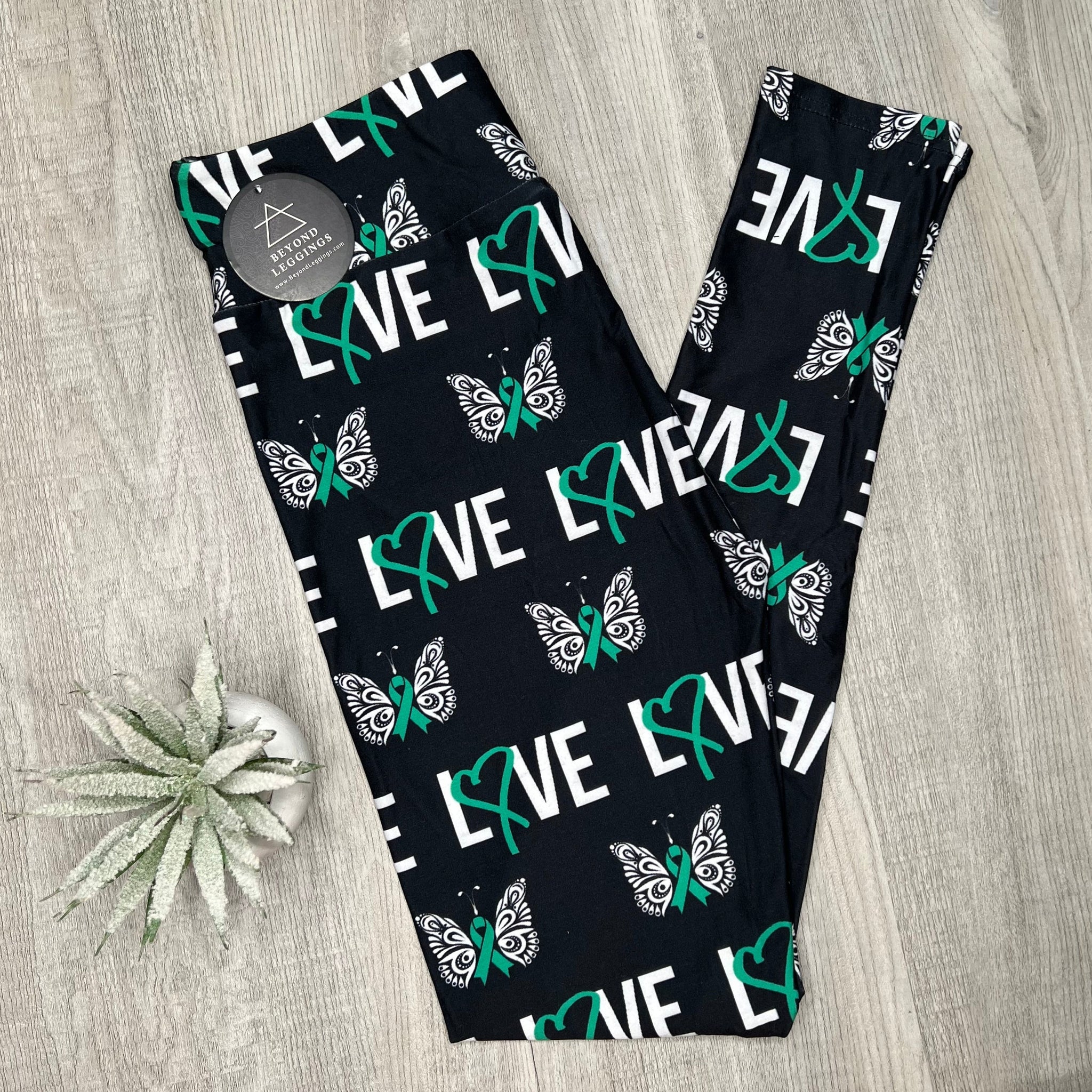 Green Ribbon Awareness Print Black Leggings