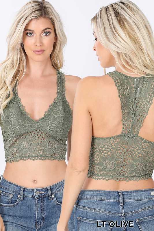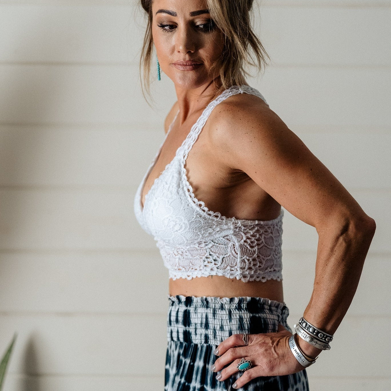 Add a flirty touch to your wardrobe with this Lace Padded Bralette Top featuring a racer back design. Soft padding offers gentle support while delicate lace adds a hint of romance. Perfect for layering or wearing solo, it’s your new go-to for effortless charm and comfort.