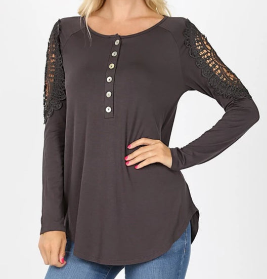 Very Soft ▪️Lace Details ▪️Relaxed Fit ▪️Curved Hem ▪️93% Rayon/7% Spandex