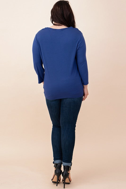 Plus size criss cross v-neck long sleeve top. The material has a nice stretch with you material. Wear to work the on the night on the town with your girls.