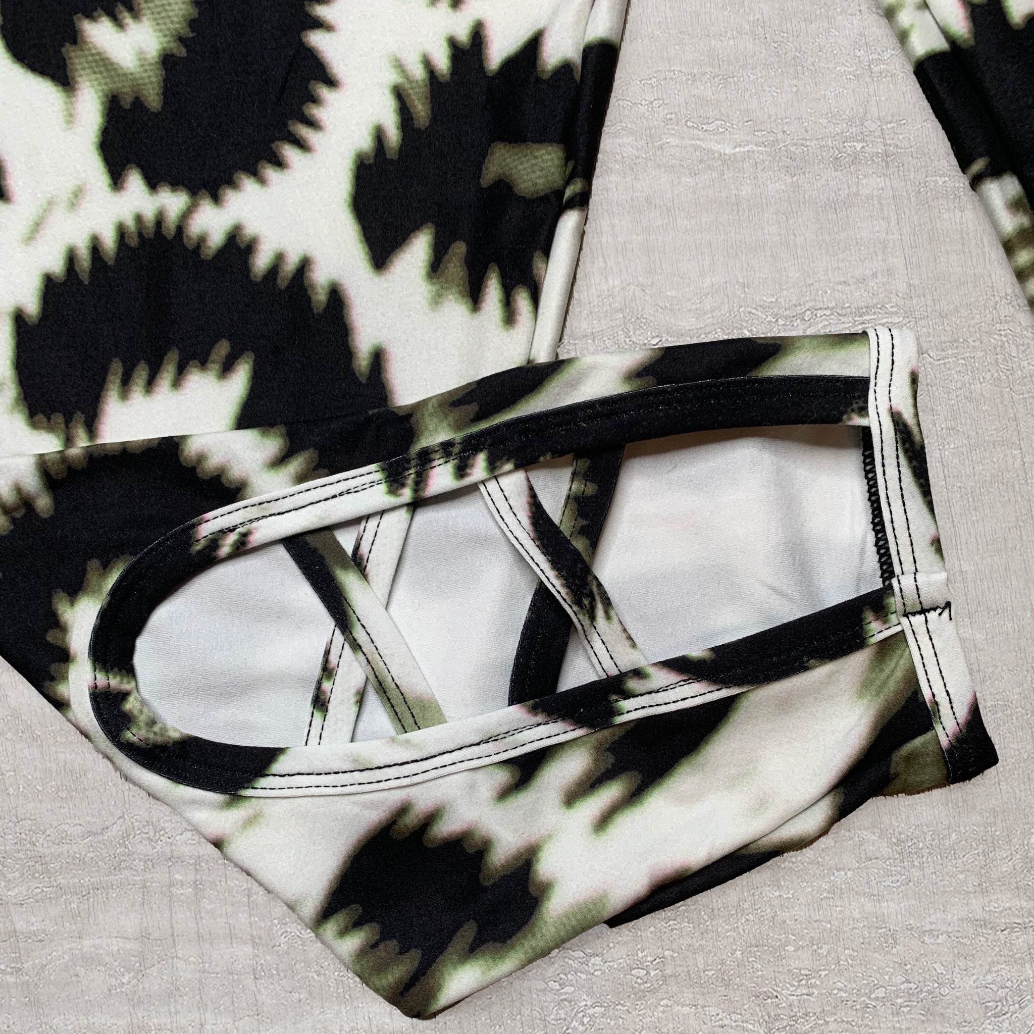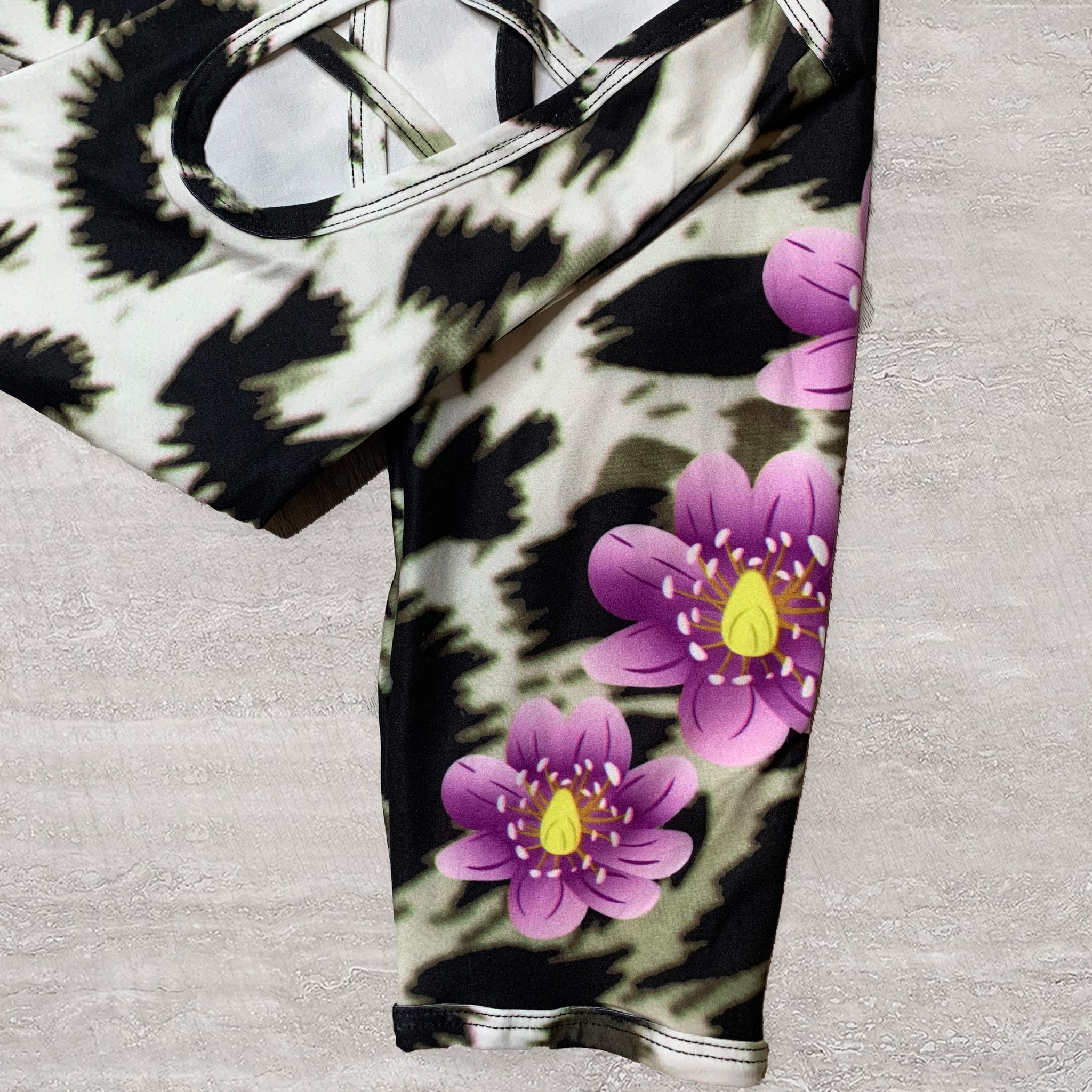 Leopard Flower Back Criss Cross Cutout Capri Soft Leggings
