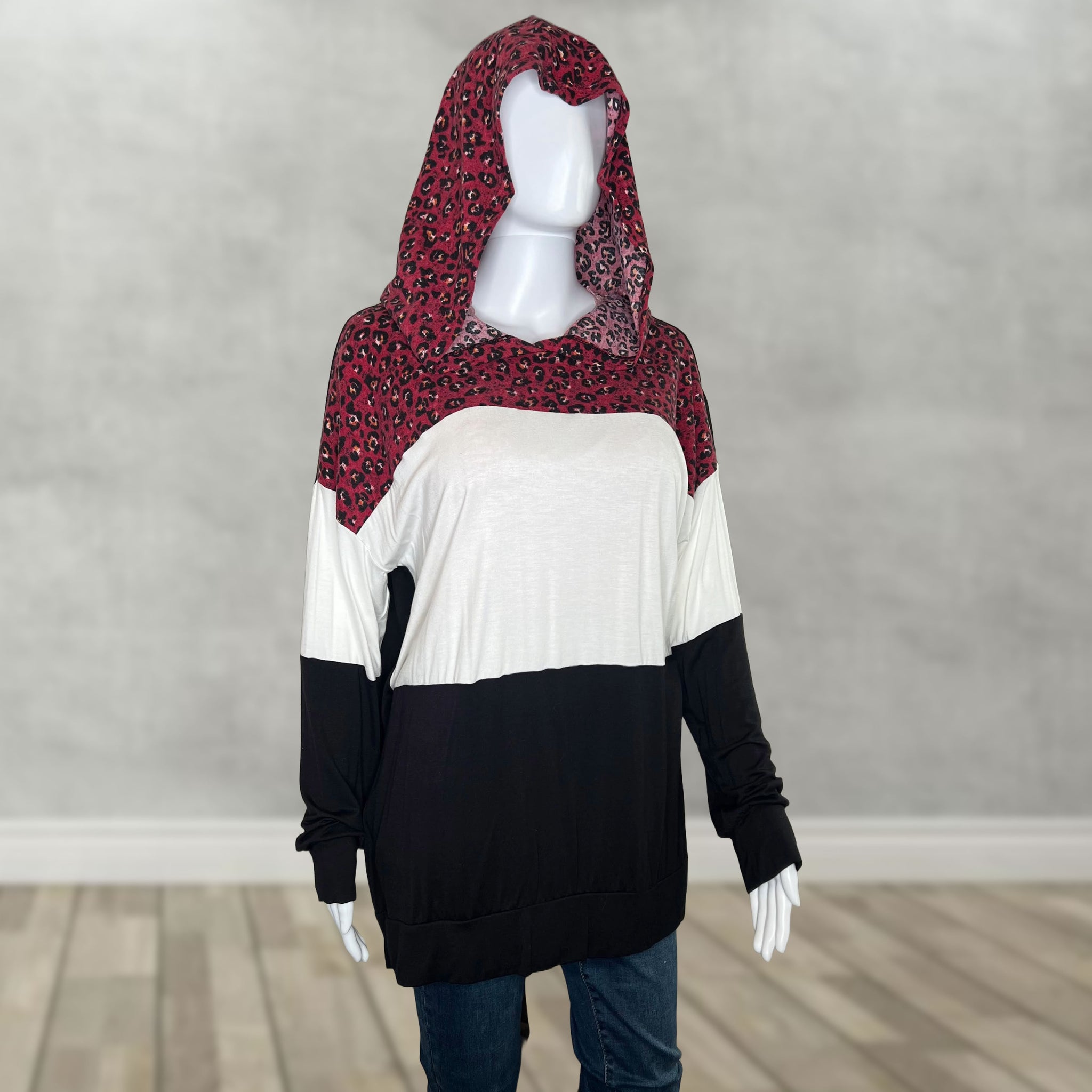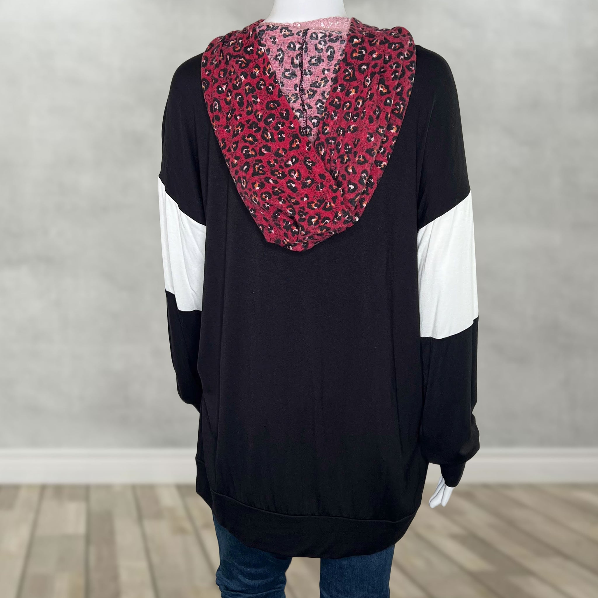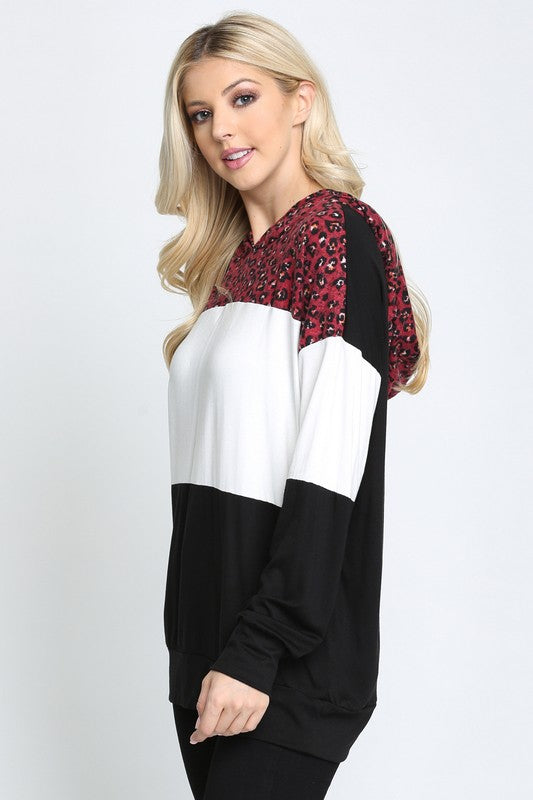 Leopard Solid Color Block Contrast Long Sleeve Hoodie