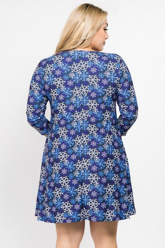 Let It Snow Blue/Purple/White Snowflake Printed Dress With Pockets