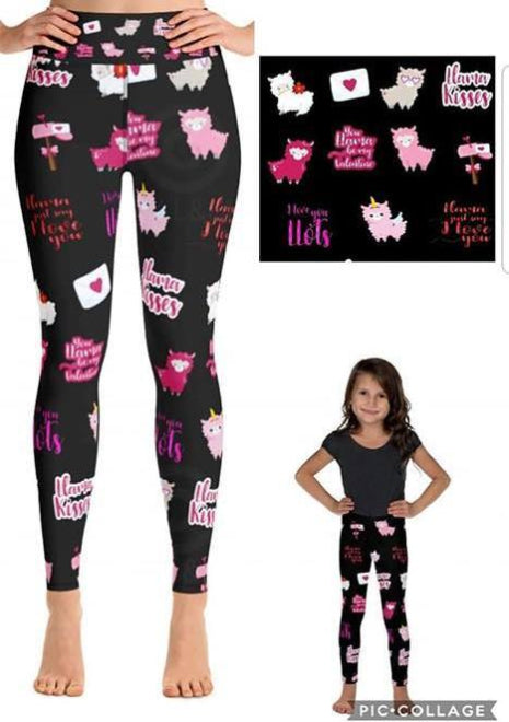 Llove You Llama-time Llama Valentine Kids Soft Leggings