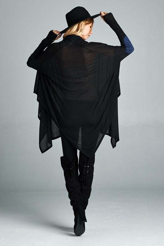 Loose Fit Cowl Neck Poncho Tunic With Elbow Patches