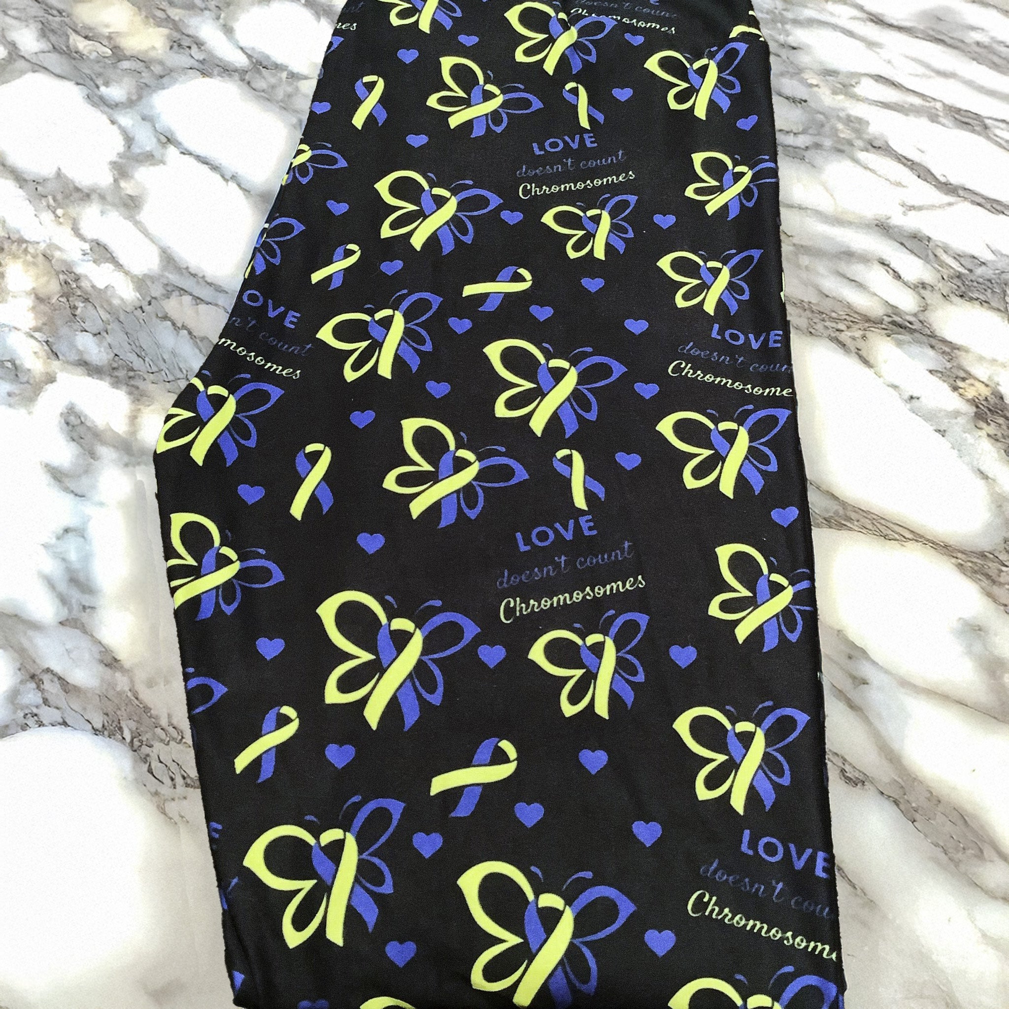 Love Doesn't Count Chromosomes - Yellow & Blue Ribbon Awareness Print Leggings