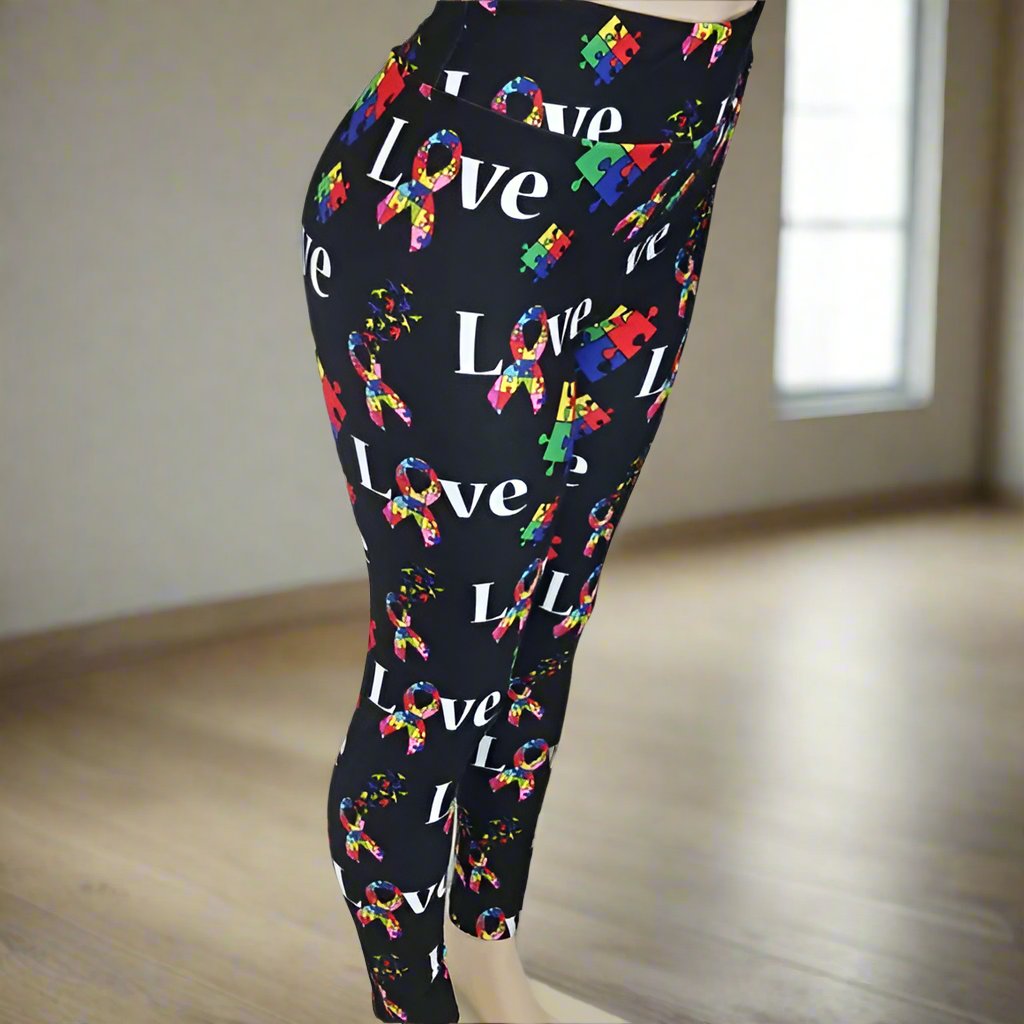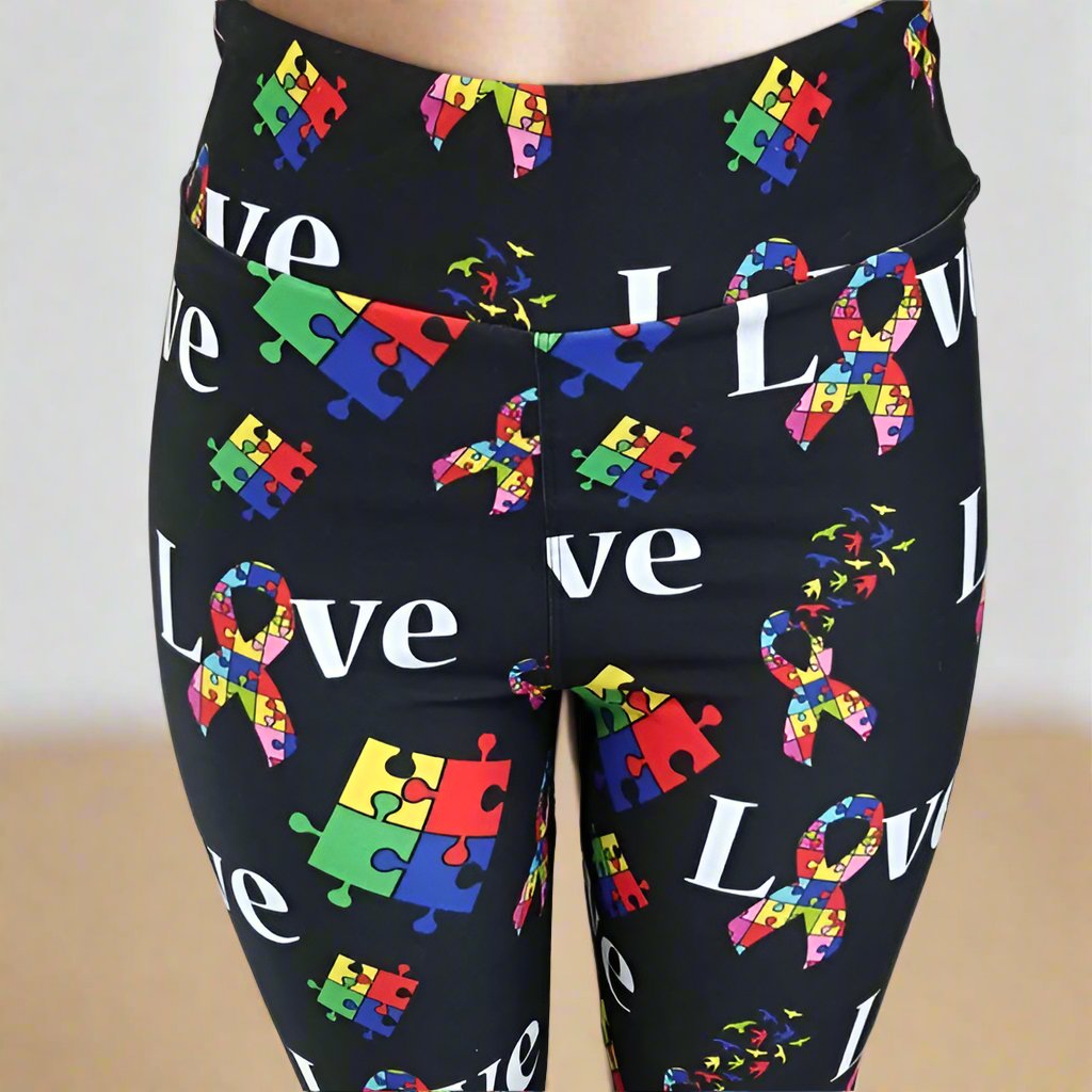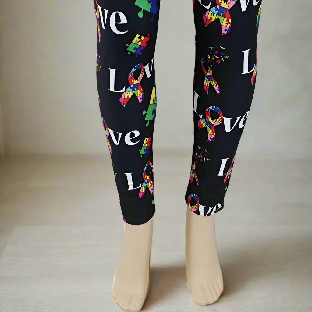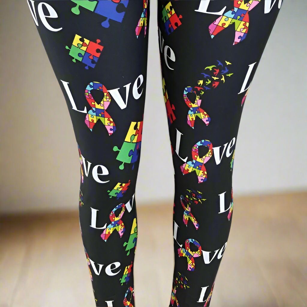 Love Puzzle Awareness Ribbon Print Soft Leggings