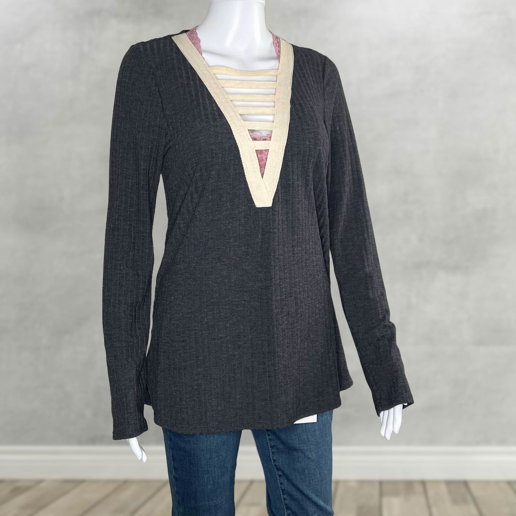 Super sexy and soft sweater top with ladder cutout plunging neckline.