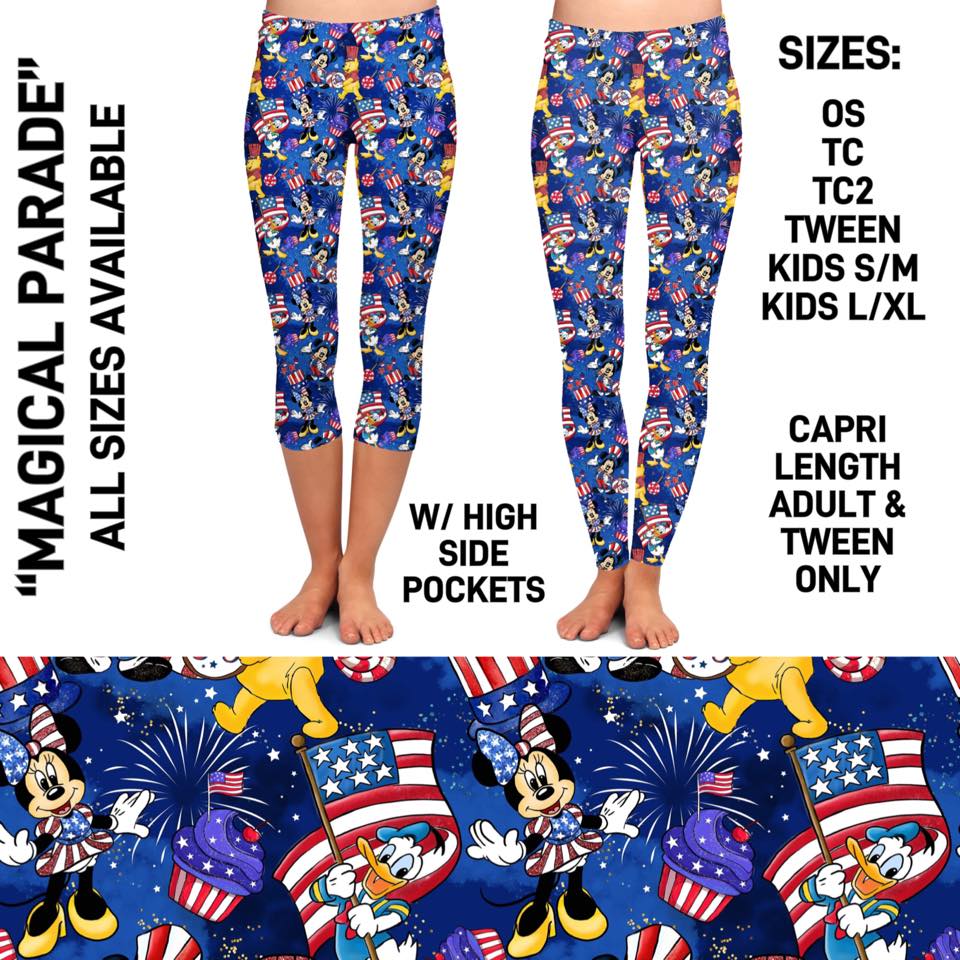 Magical Patriotic Mouse Parade Print Blue Leggings w/ Pockets