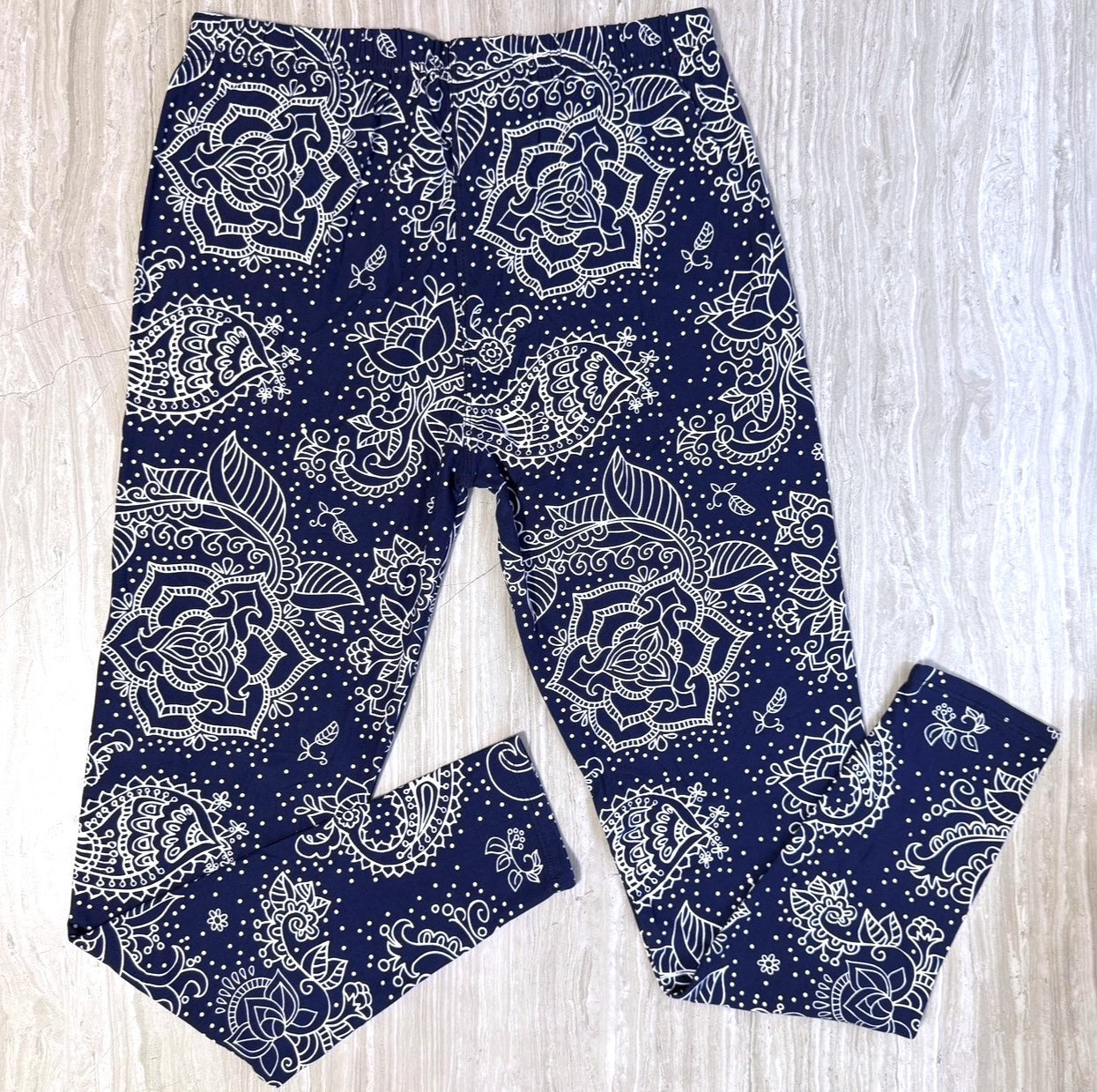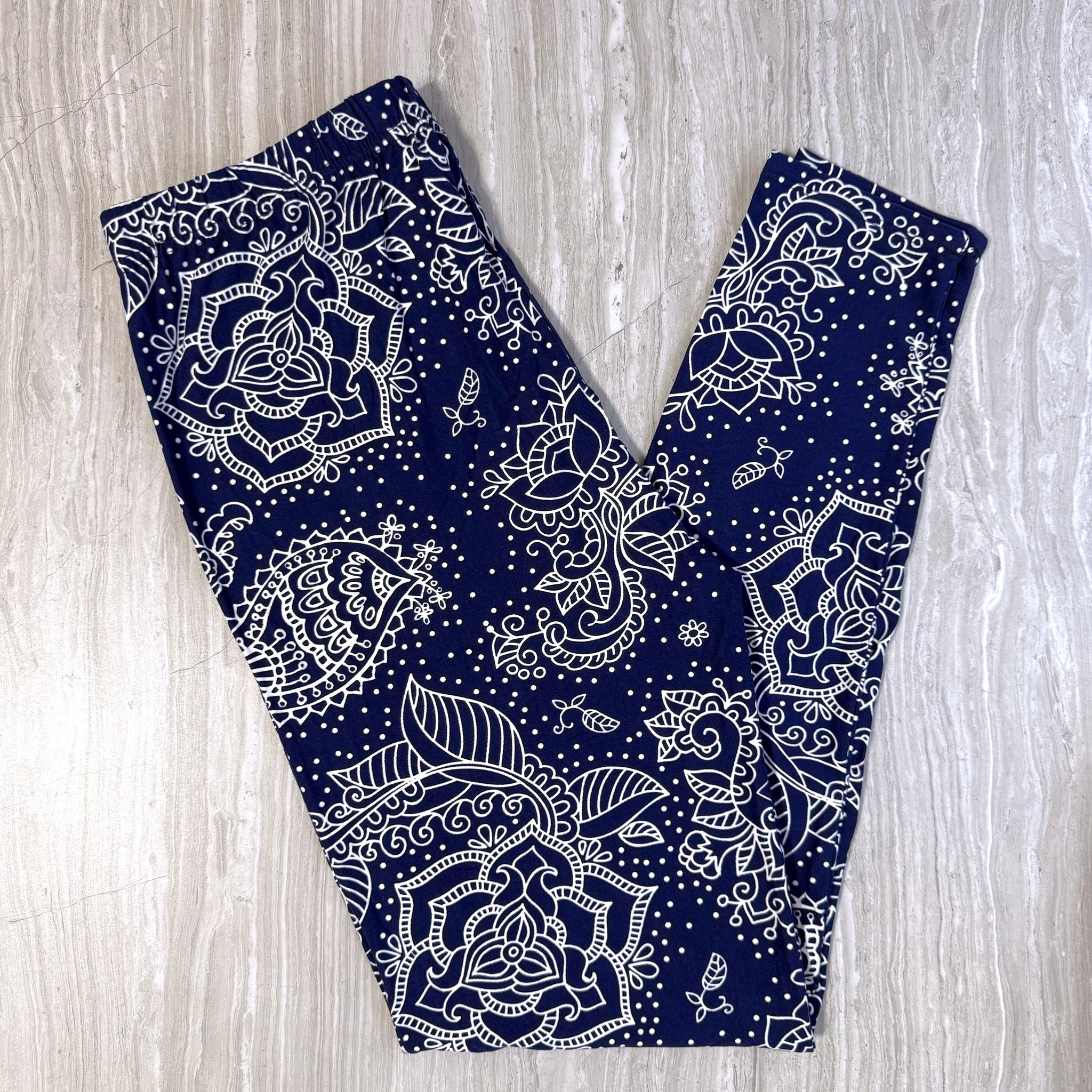 Mandala Paisley Floral Print Navy Blue Leggings