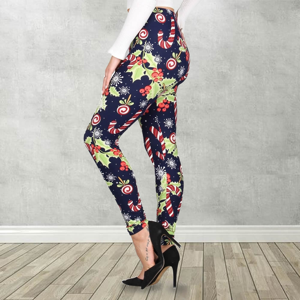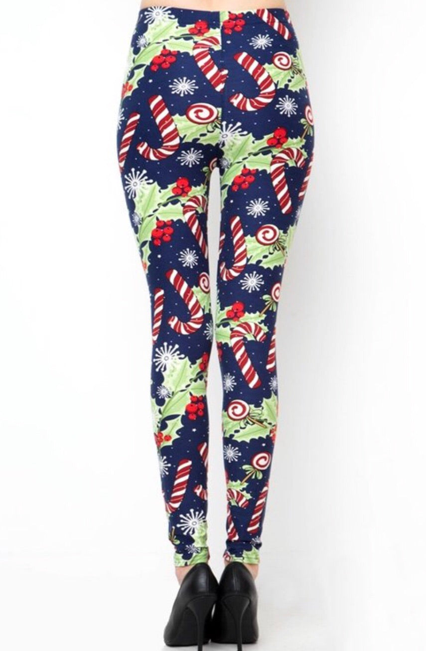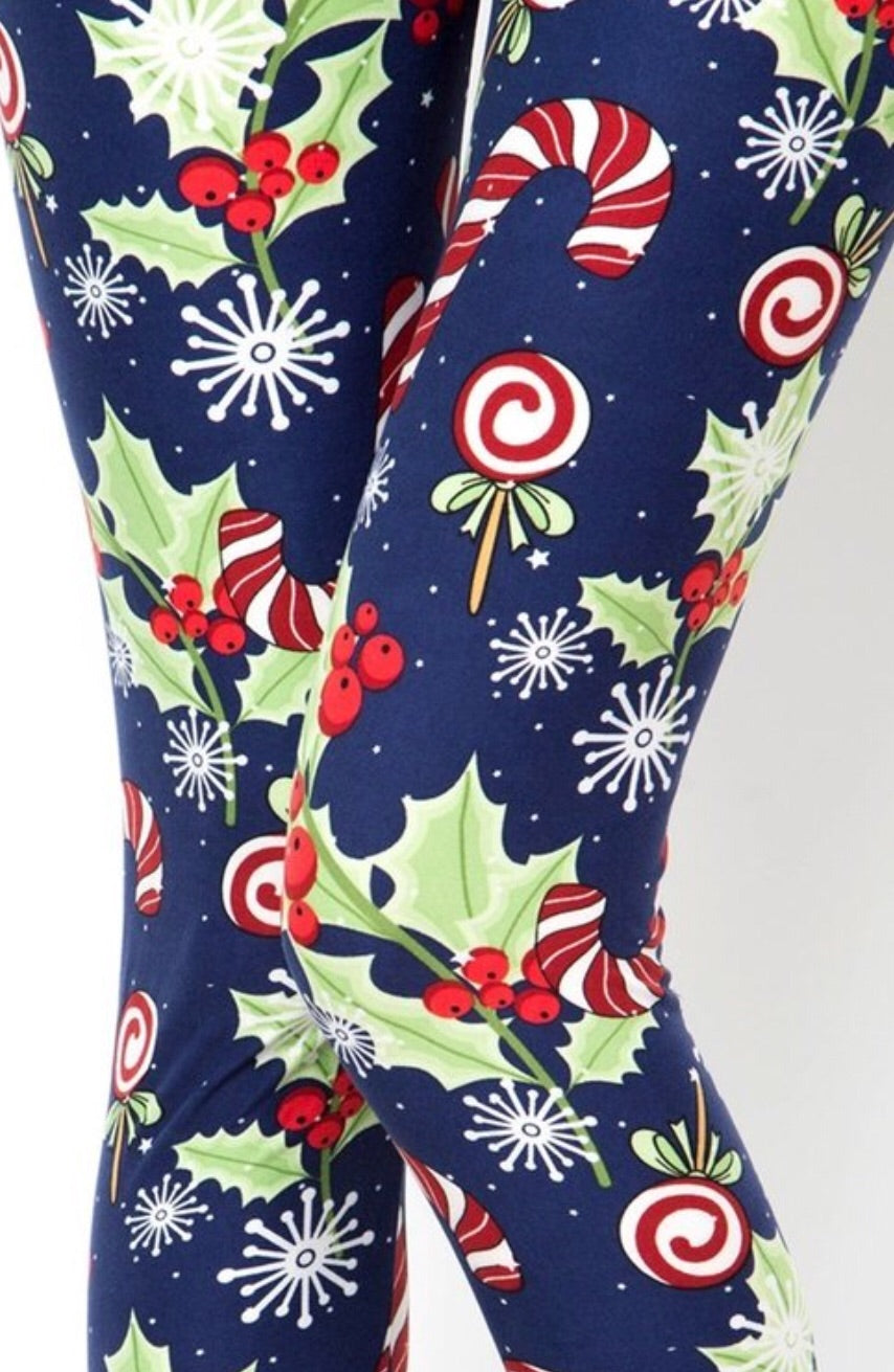Holly and Candy Canes CHristmas Print Soft Leggings