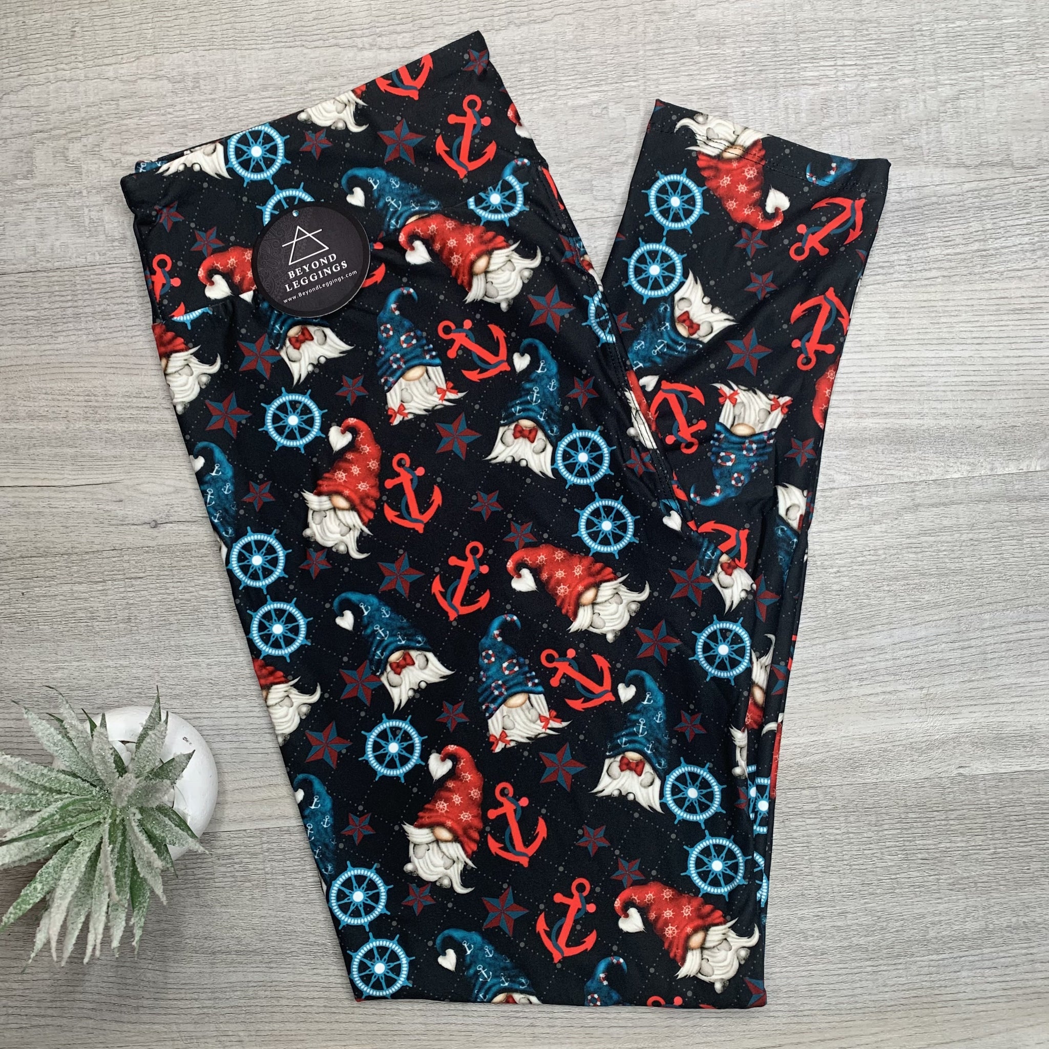 Nautical Anchor Gnomes Print Soft Leggings - Full or Capri