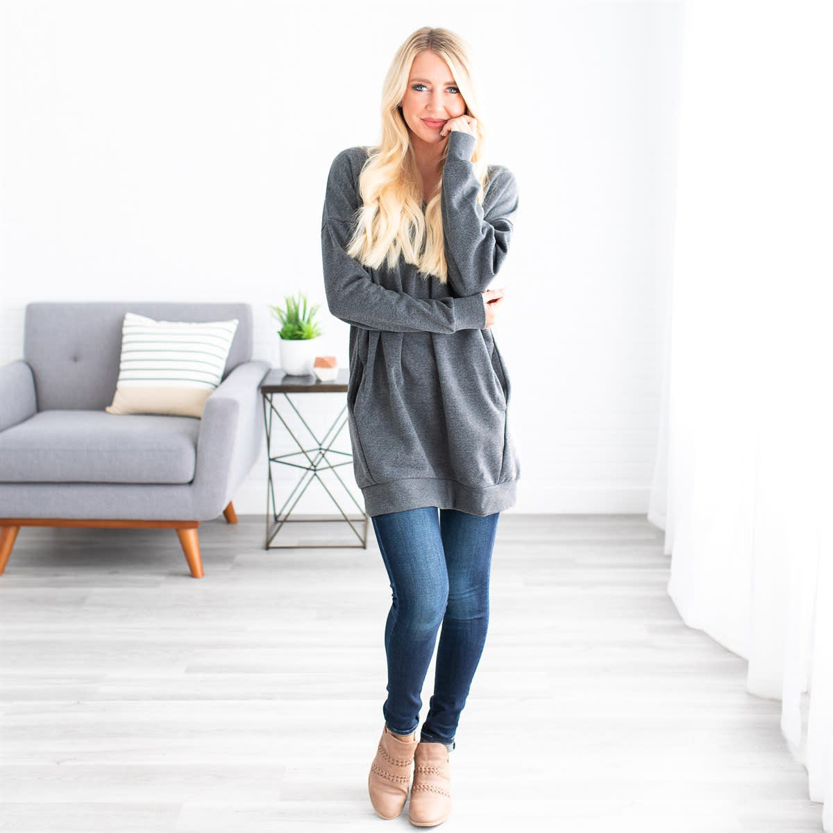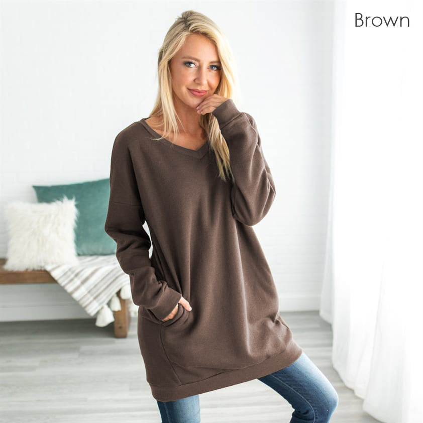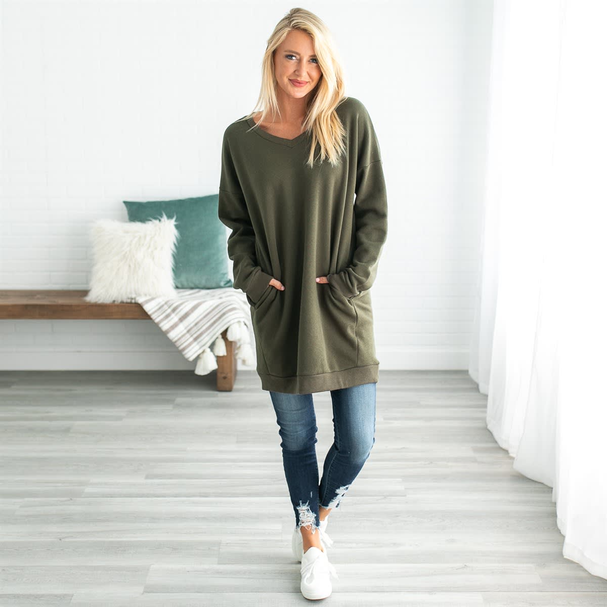 Oversized Loose Fit V-Neck Tunic Sweatshirt