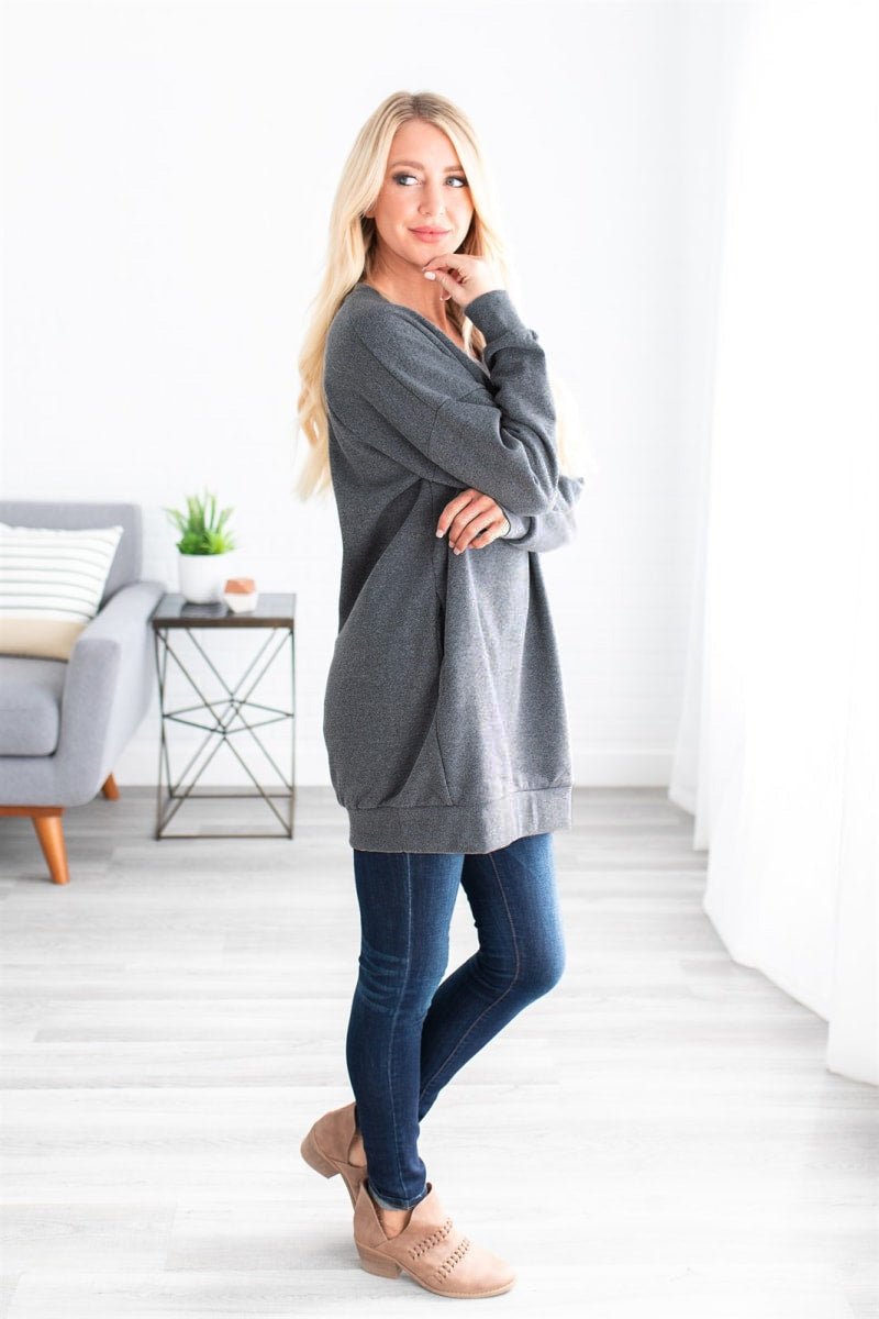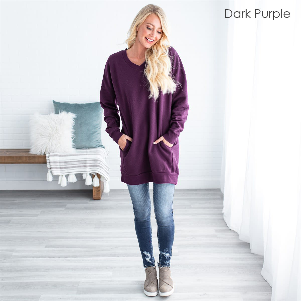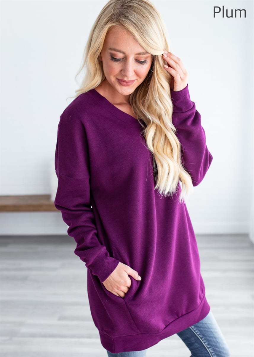 Oversized Loose Fit V-Neck Tunic Sweatshirt