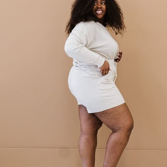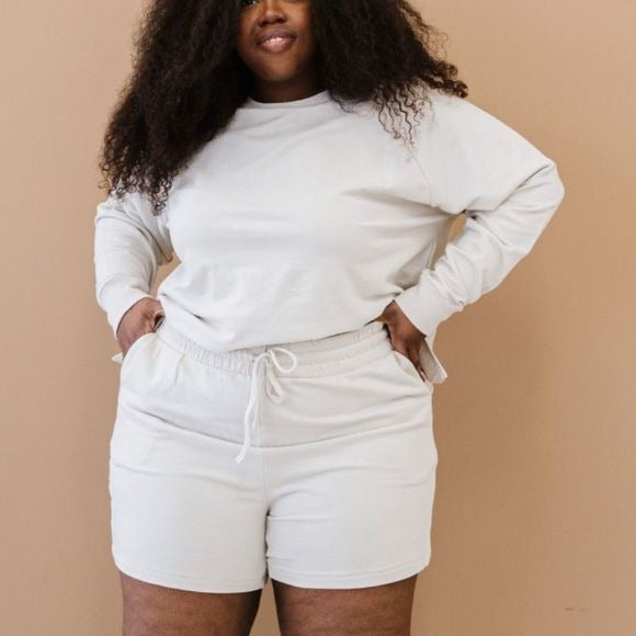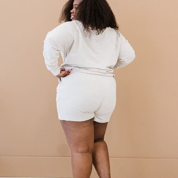 Oversized Cotton Terry Lounge Set – Long Sleeve Top & Drawstring Shorts - Plus