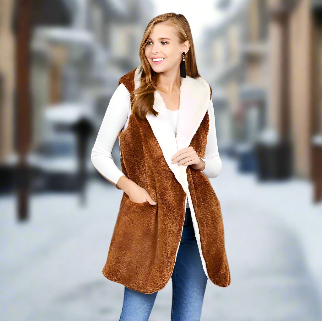 Stay nice and warm this winter in this super plush fluffy vest. It will feel like you are being hugged by a warm cloud. These run true to size.