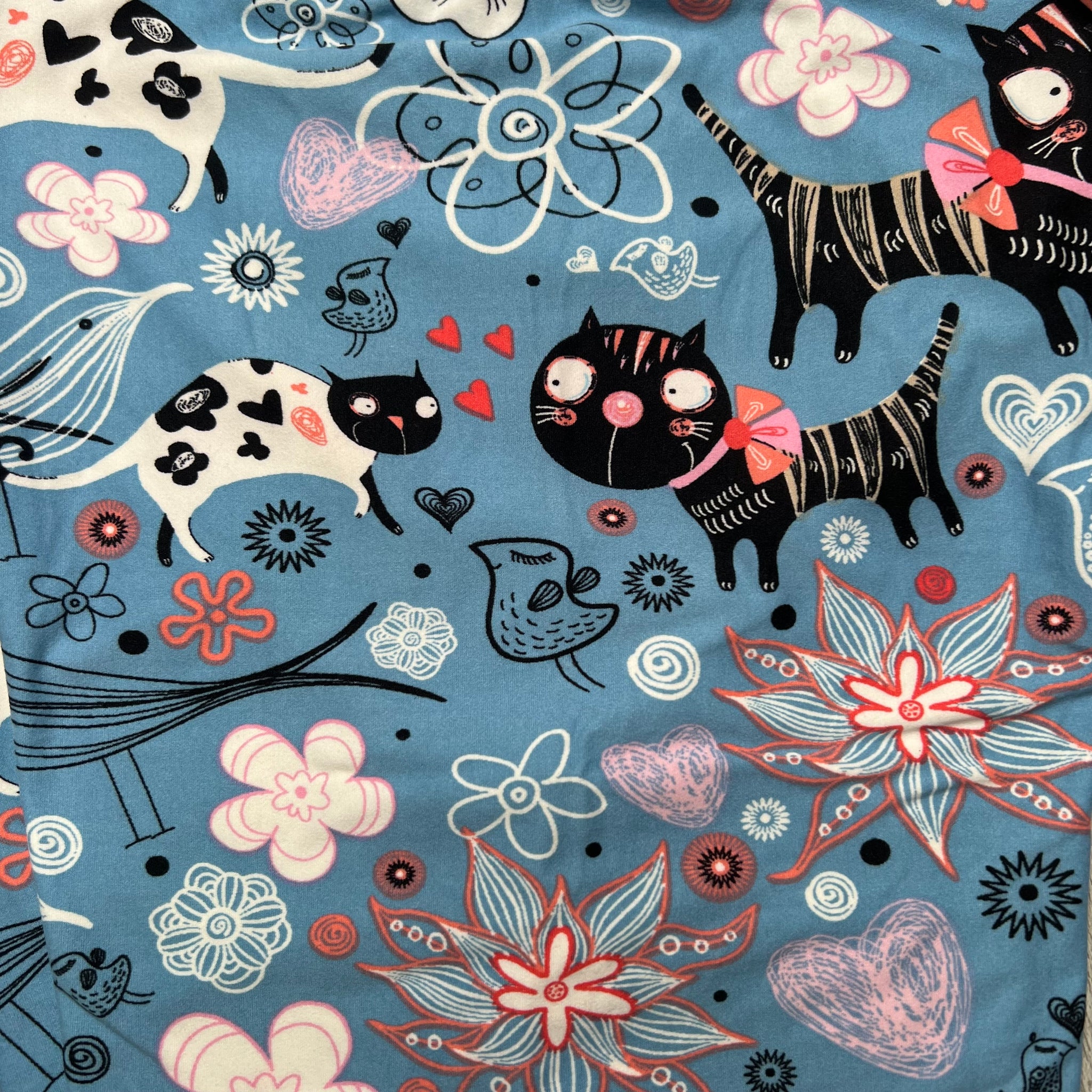 Parisian Blue Kitty Cat Print Soft Leggings