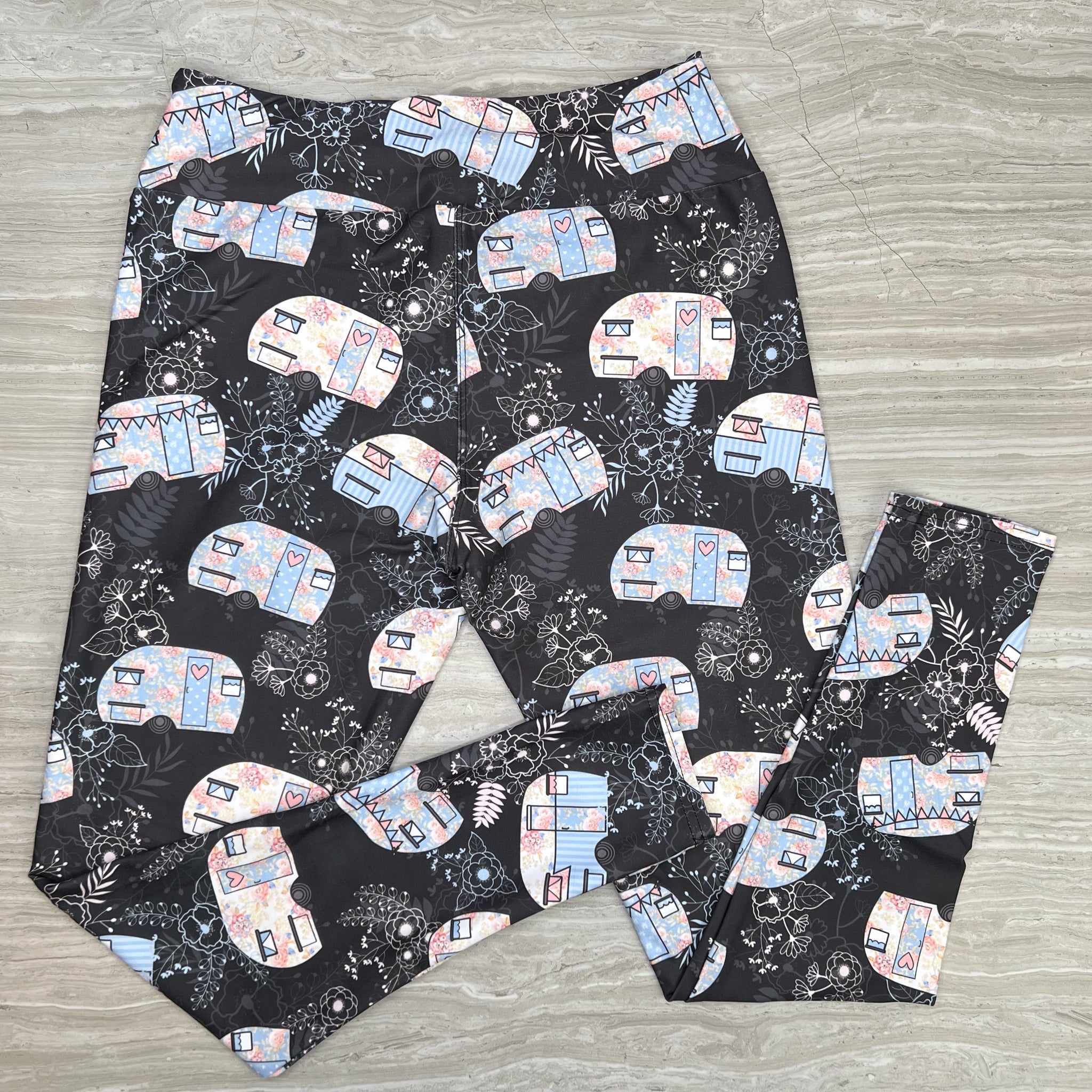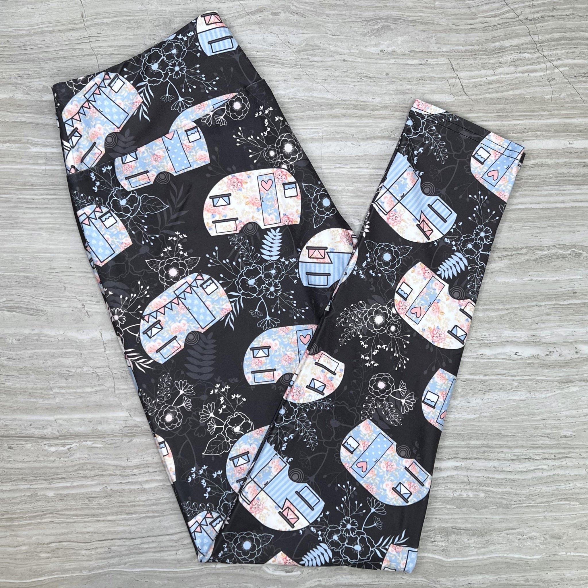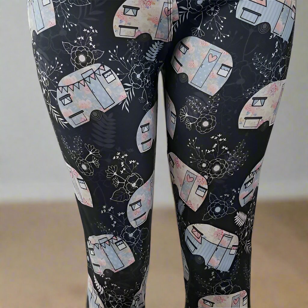 Pastel Floral Camper Print Gray Leggings