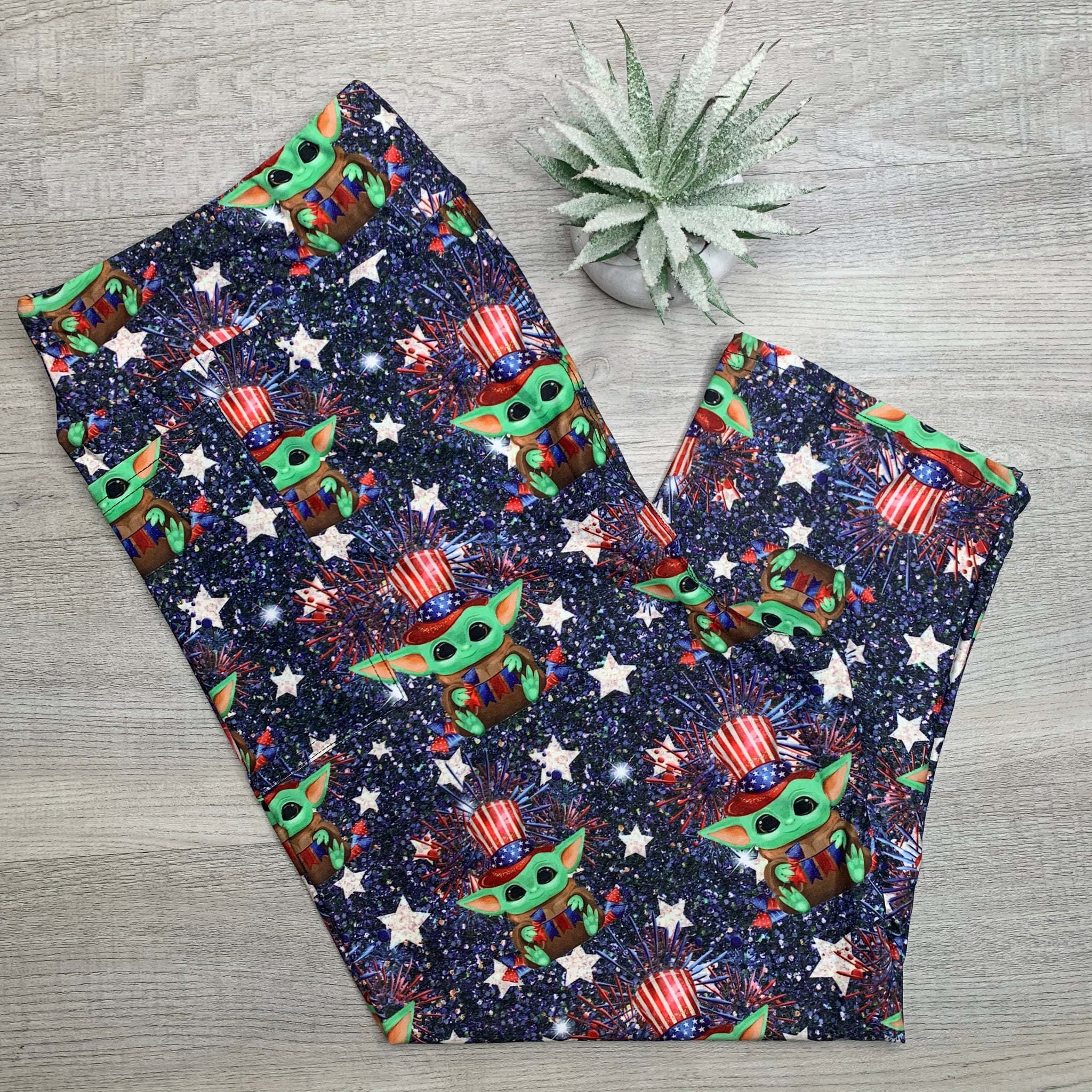Fourth Of July Groku Print Capri Leggings w/ Pockets