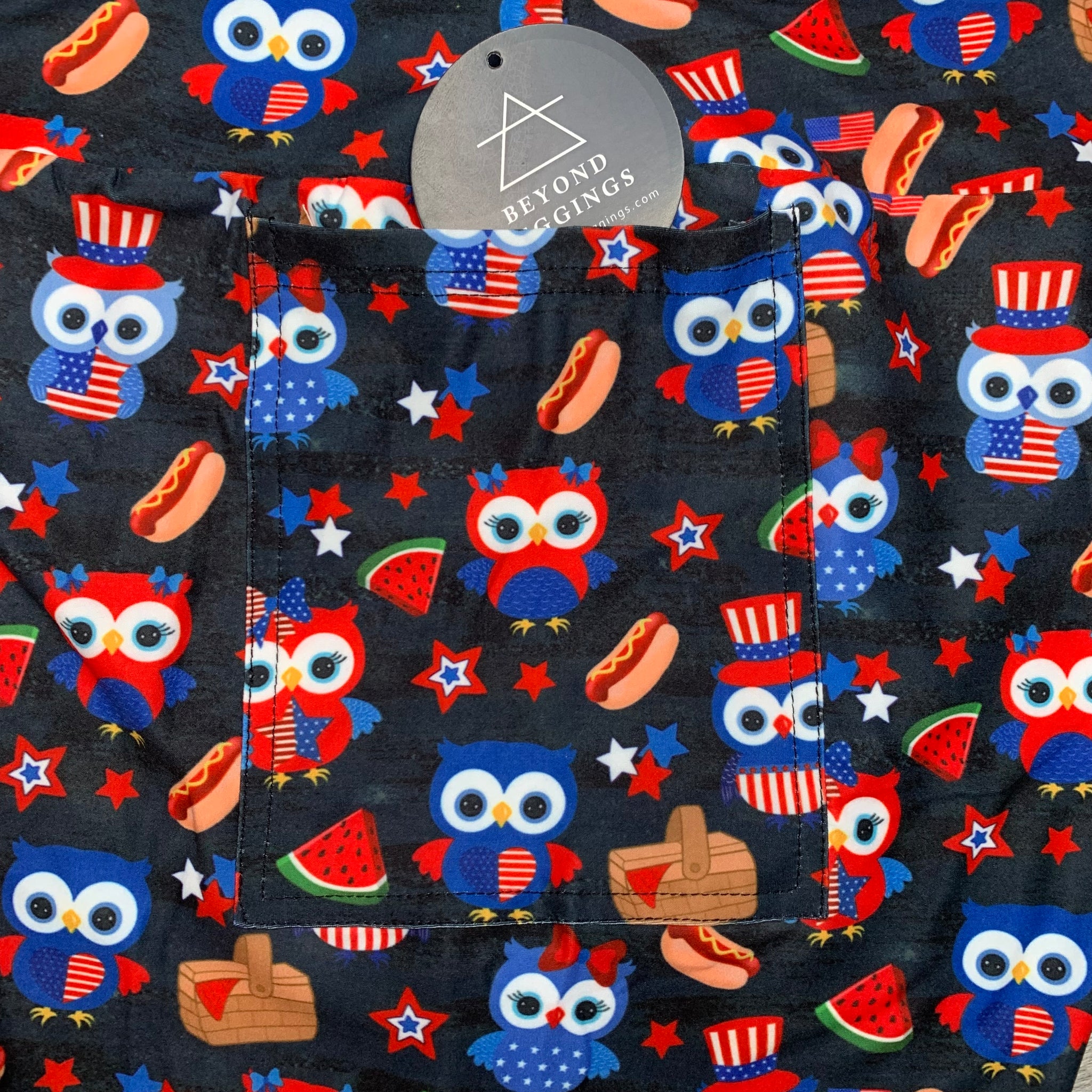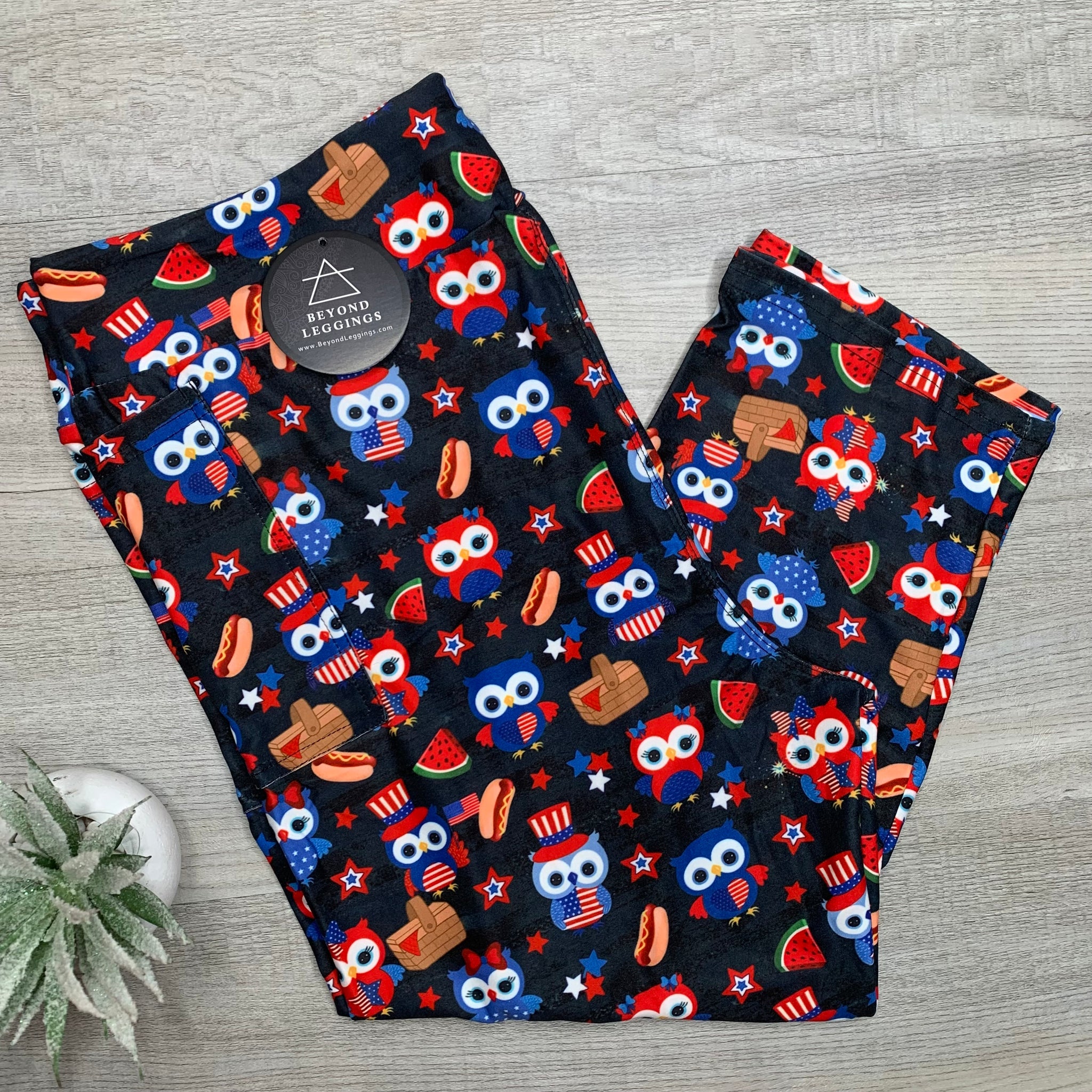 4th of July Owls CAPRI Soft Leggings w/ Pockets
