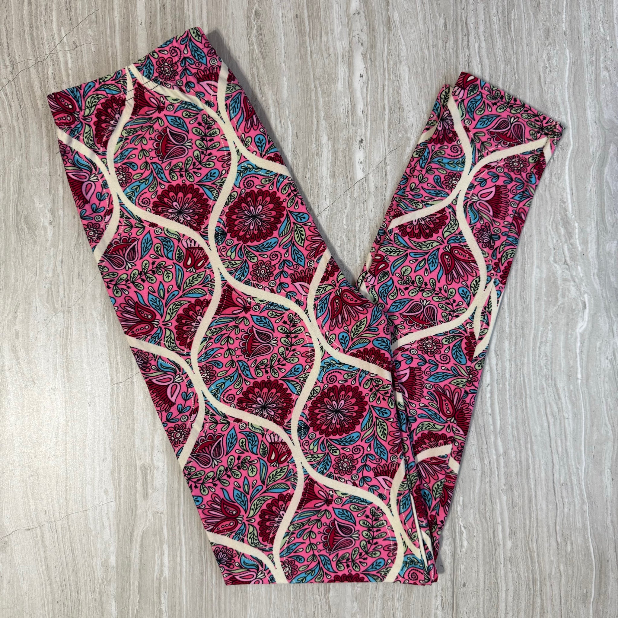 Pink Floral Paisley Ogee Print Leggings