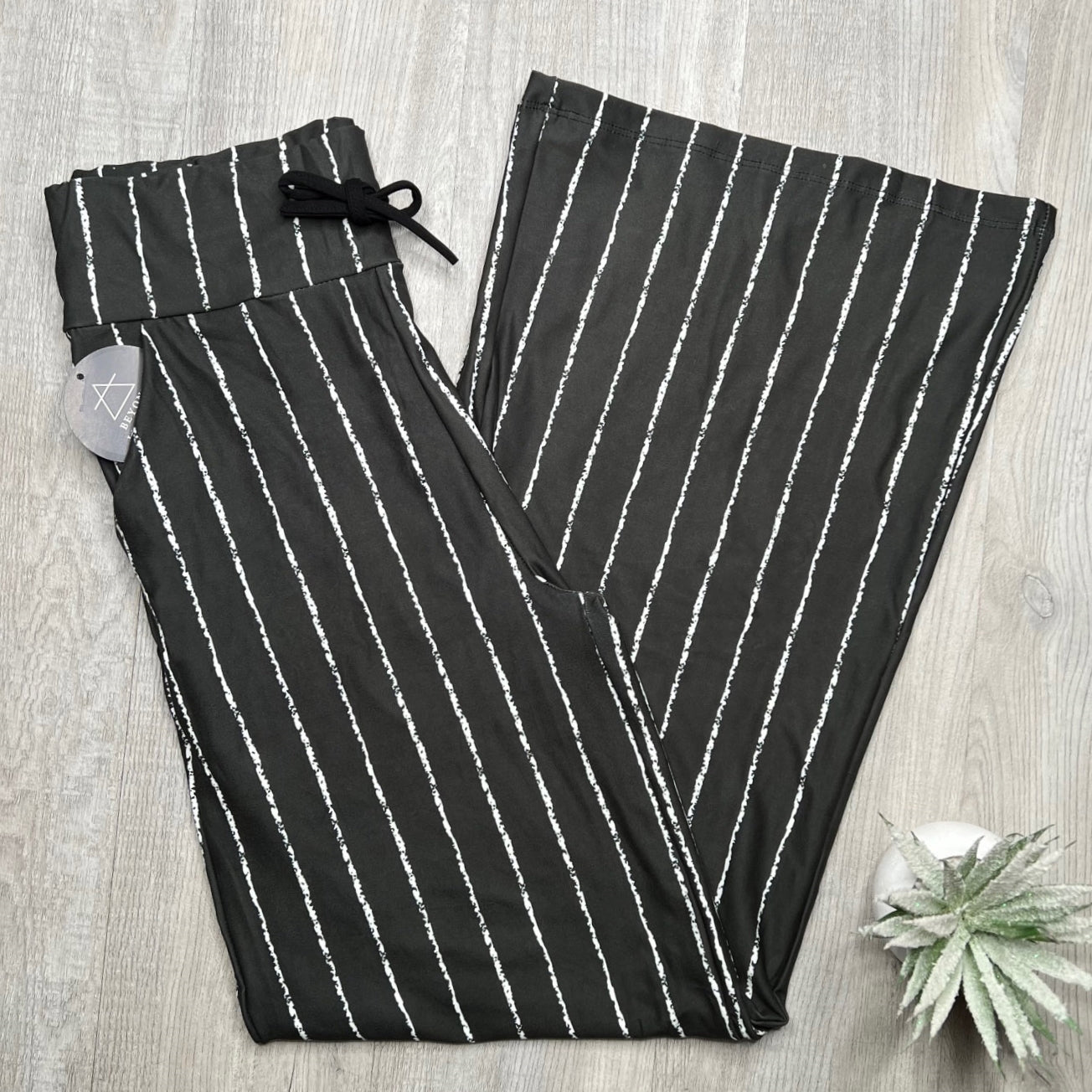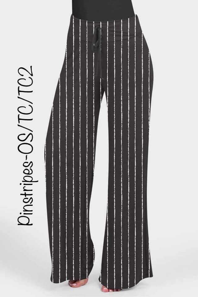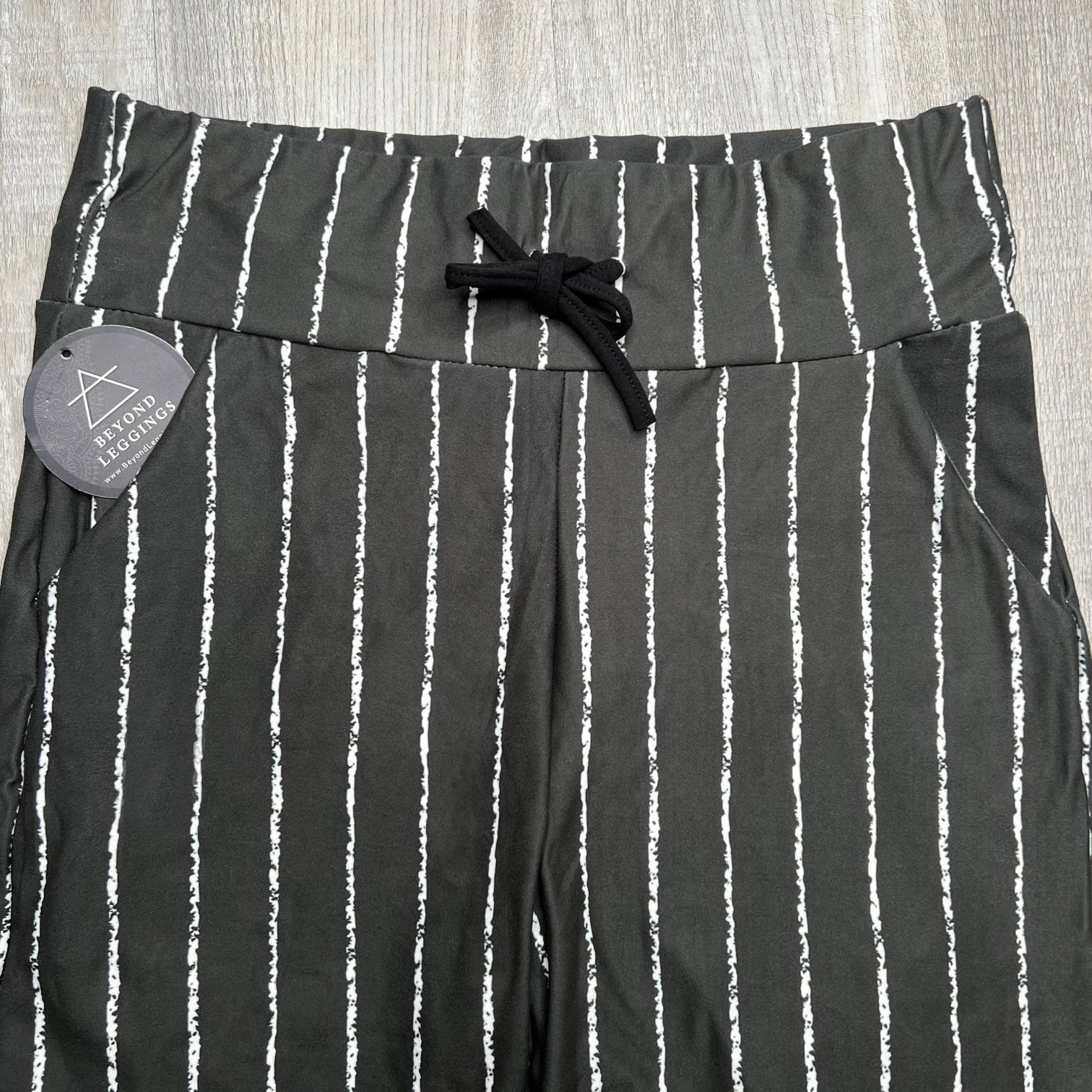 Pinstripe - High Waisted Wide Leg Hybrid Leggings/Pants w/ Pockets