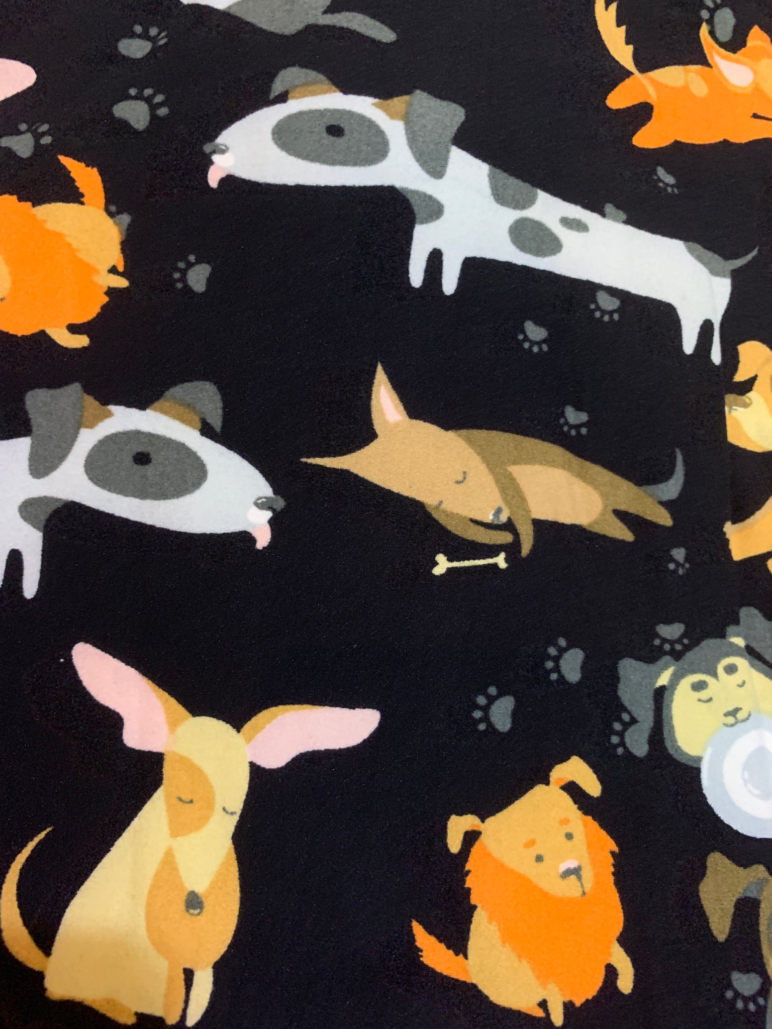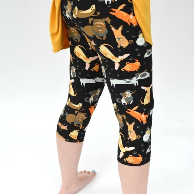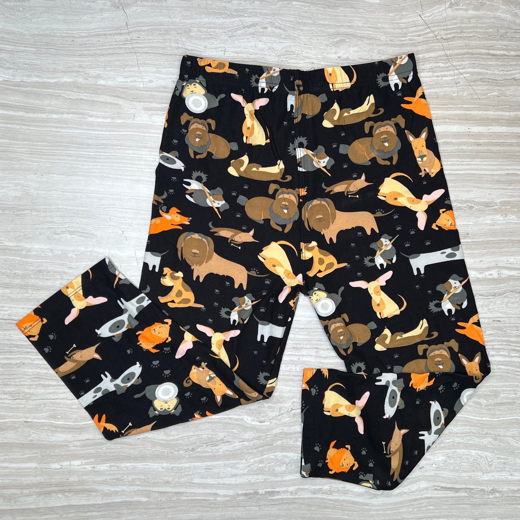 Playful Mixed Dog Print Soft Capri Black Leggings