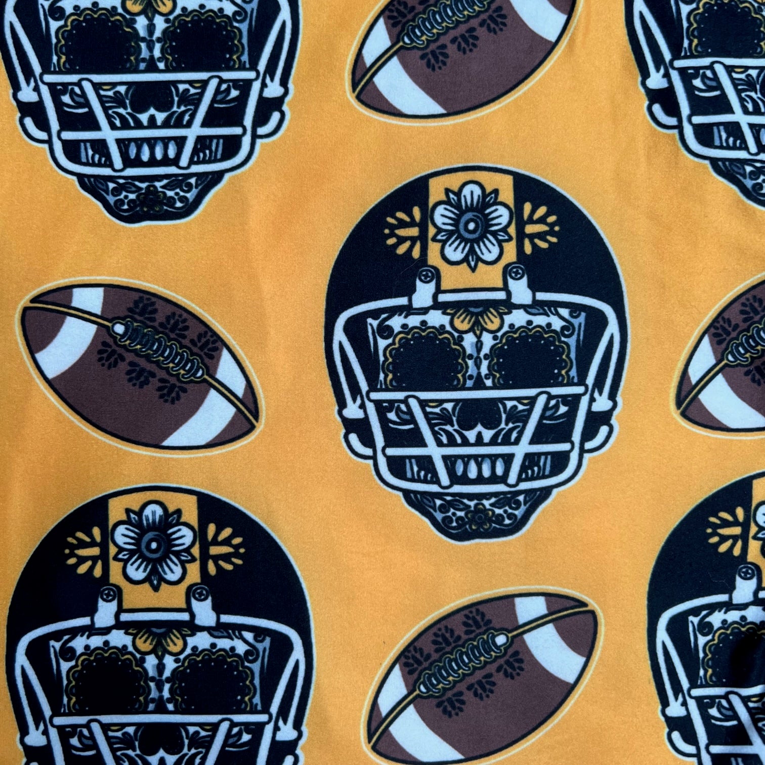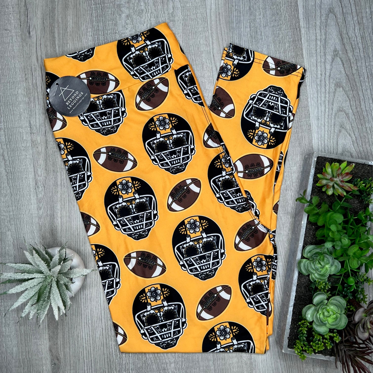 Black & Yellow Sugar Skull Football Print Soft Leggings