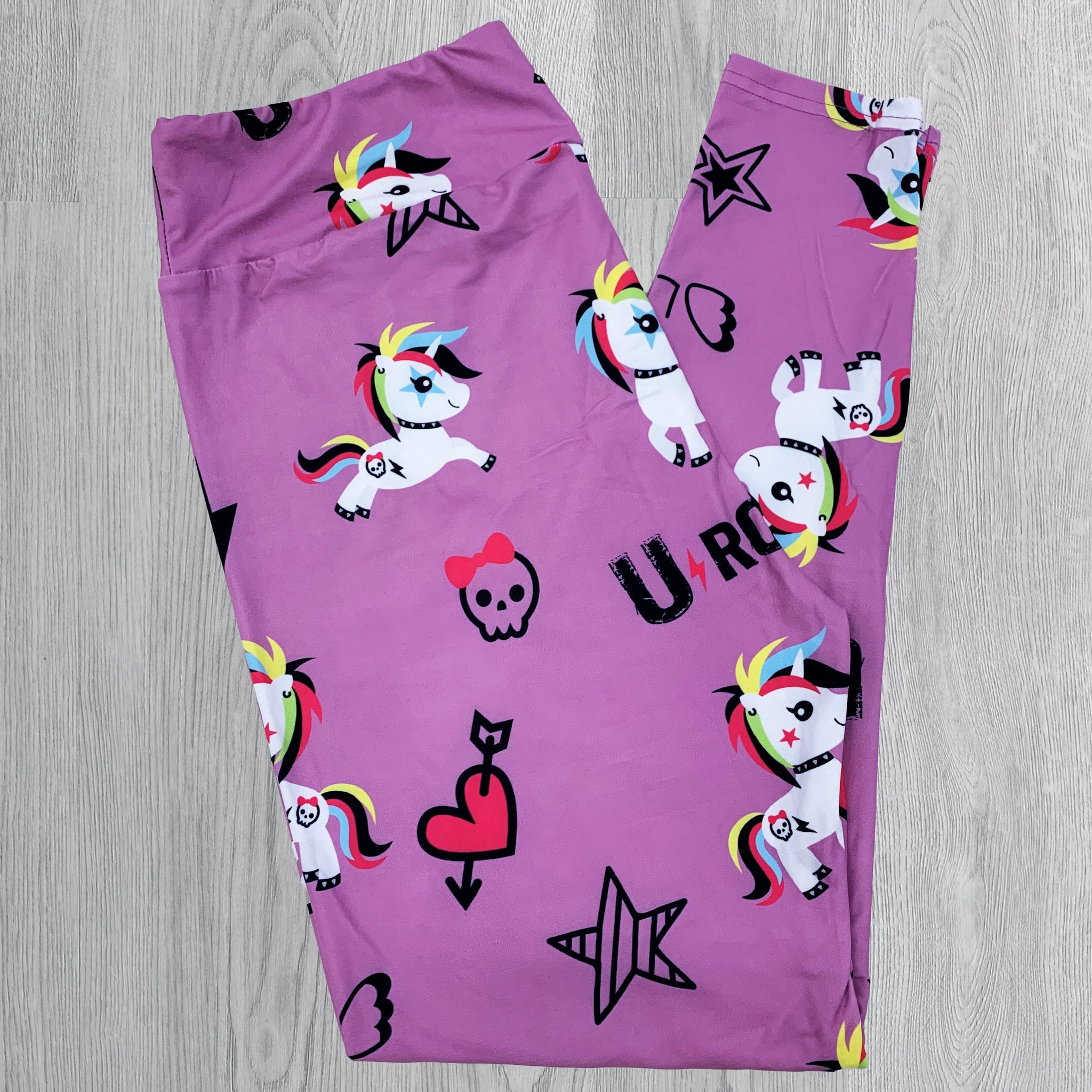 • Versatile Design: A vibrant mix of punk unicorns and heart motifs make these leggings suitable for a variety of occasions.