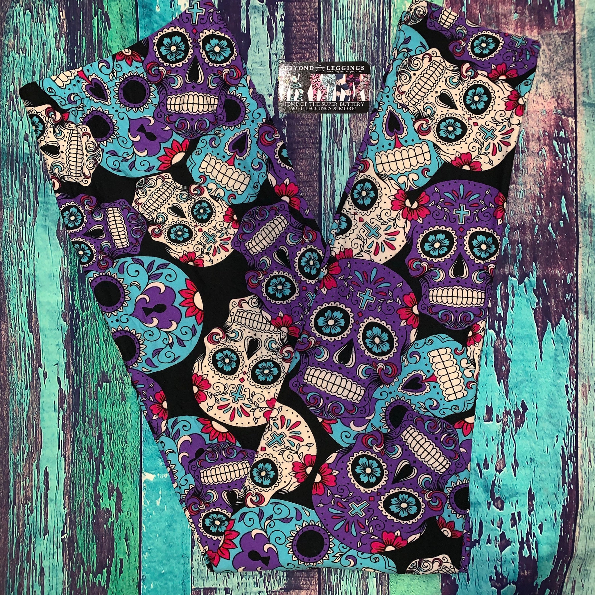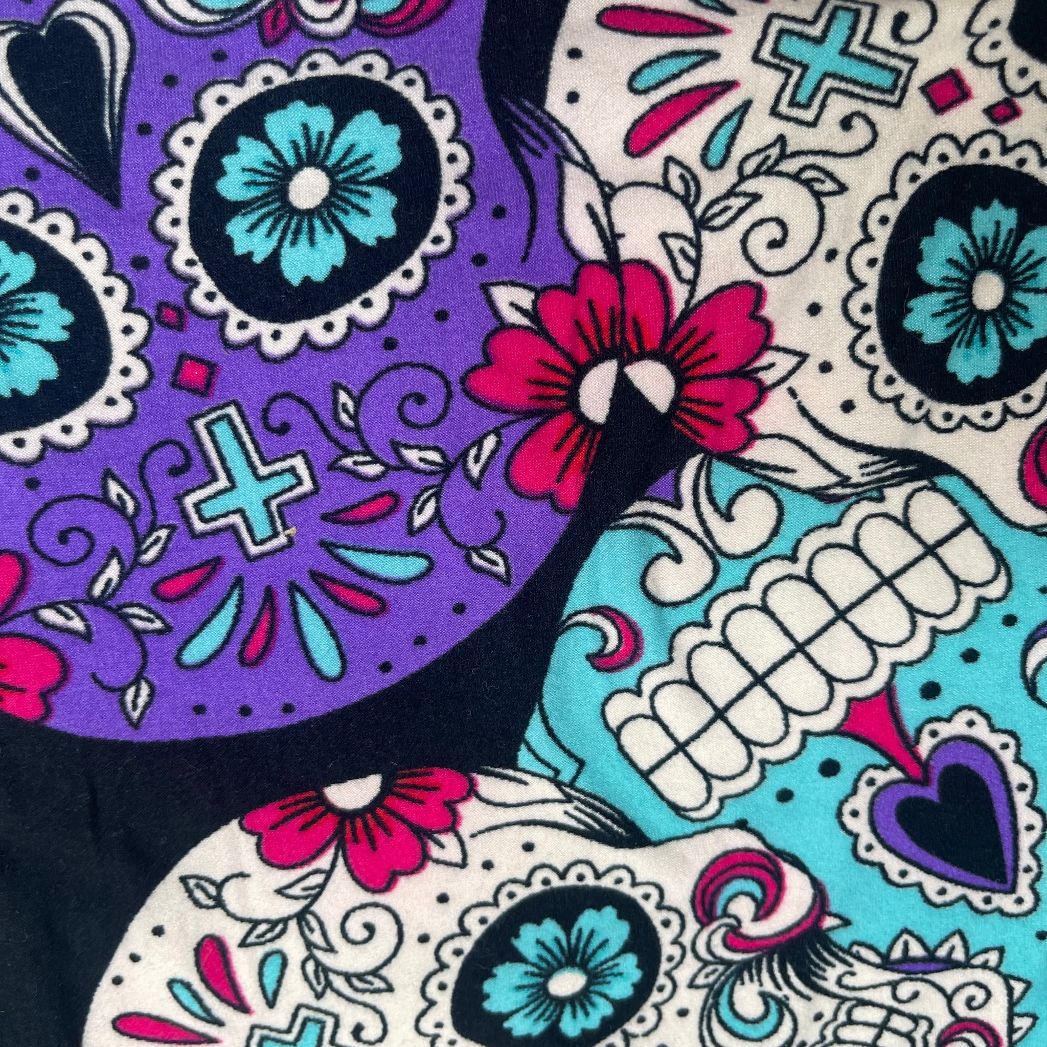 Purple & Teal Sugar Skull Print Soft Leggings