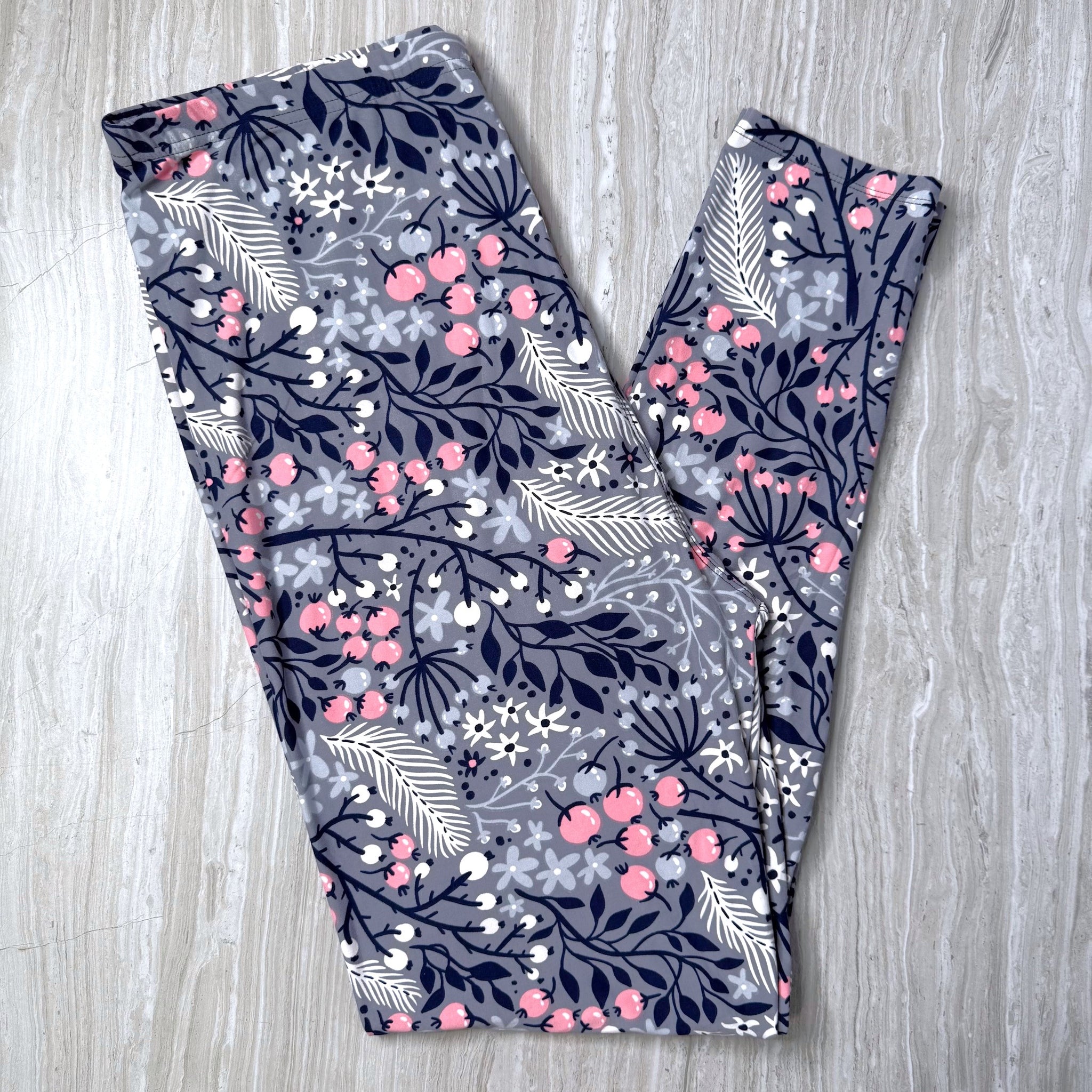 Queen Lace Flower Pink & Gray Print Soft Stretchy Leggings