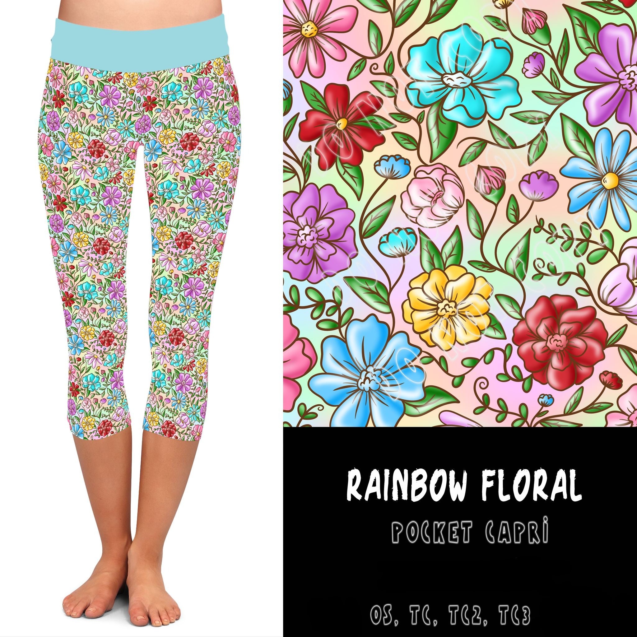 Rainbow Floral Print Capri Soft Leggings w/ Pockets