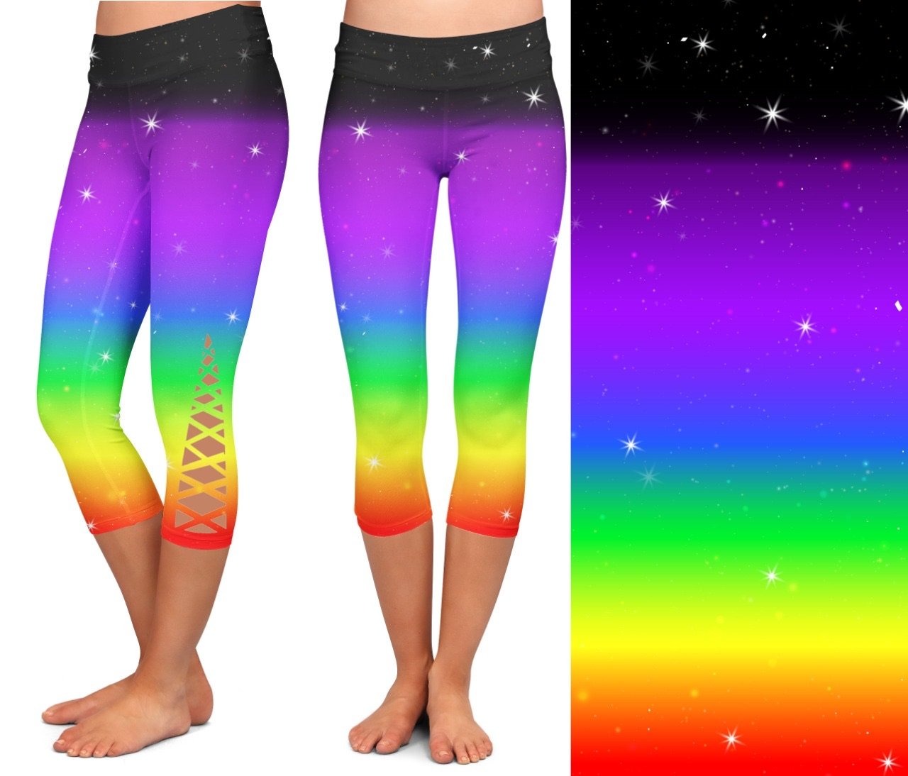 Rainbow Side Crisscross Cutout Capri Soft Leggings W/ Pockets