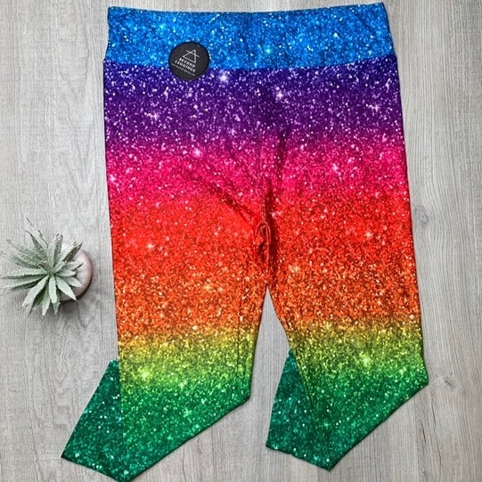 Rainbow Sparkle Glitter Printed Design Capri Leggings