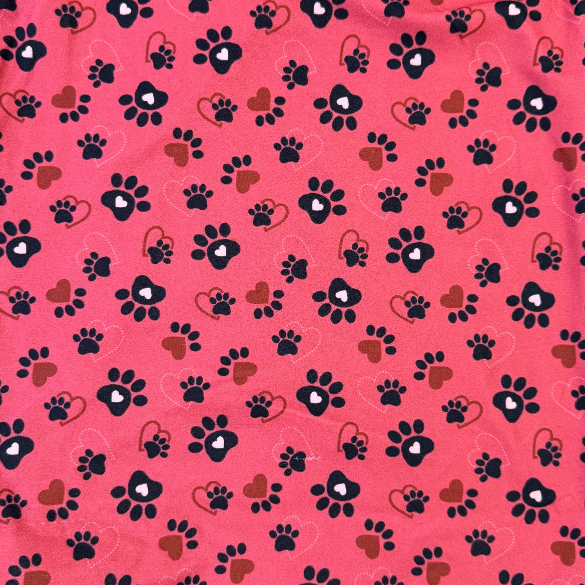 Raspberry Pink Paws & Heart Print Capri Leggings
