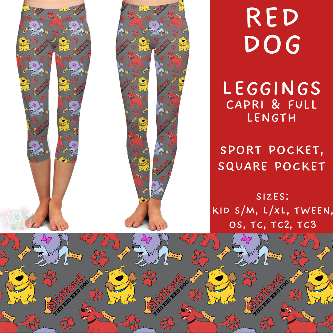 Ready To Ship - Red Dog - Full Length Leggings No Pocket TC